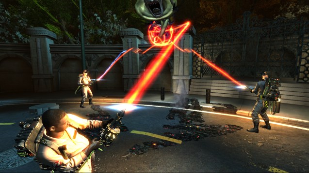 Anders als vielleicht zu erwarten, dürfen wir uns in Ghostbusters: The Video Game nicht in eines der vier bekannten Gesichter schlüpfen. Stattdessen übernehmen wir die Rolle eines namenlosen Auszubildenden, der von den Geisterjägern liebevoll „Rekrut“ genannt wird. In der Geisterjägerzentrale mitten in Manhattan bekommen wir im Keller das Fangen eines Geistes beigebracht, bevor wir in den harten Arbeitsalltag übergehen. Jeder der die Filme nicht gesehen hat, braucht nicht verzweifeln. Alle anfallenden Arbeiten eines Geisterjägers werden von unseren vier Bossen genauestens erklärt. Auf unserem Rücken tragen wir jederzeit ein Protonenpäckchen, an welchem der Strahler befestigt ist. Dies ist sozusagen unsere Waffe, die in erster Linie für das Schwächen und Einfangen der Geister gedacht ist Um ein Gespenst überhaupt erst einzufangen, muss es mit Hilfe des PKE-Meters aufgespürt und durch den Strahler geschwächt werden. Im richtigen Moment legen wir dann unsere Falle aus, welche sich sofort öffnet, wenn wir den Geist mit Hilfe des Protonenstrahls über ihr schweben lassen.