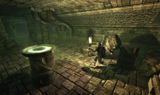 Die Verwendung des Zauberspruchs ist in den nächsten Auseinandersetzungen unabdingbar. Mutierte Käfer müssen erst mit unserer Waffe bearbeitet und geschwächt werden, bis sie sich in der Oberfläche des Bodens vergraben, um ihre Energie aufzufrischen. In diesem Moment müssen wir den Blitzstrahl auf die Monster feuern, damit sie für einen kurzen Augenblick bewegungsunfähig sind und wir ihnen mit unserer Waffe weiteren Schaden zufügen können. Dies klingt zwar intuitiv, hat allerdings auch zwei entscheidende Nachteile. Zum einen ist das Wechseln zwischen Magie und Angriffswaffe über die Schnellzugriffsleiste in relativ kurzen Abständen auf Dauer nervig. Des Weiteren verliert das Spiel an Charme, was die Reihe groß gemacht hat. War es früher möglich, sich einzig und allein auf einen Pfad seiner Charakterentwicklung zu entwickeln, wird man in Arcania: Gothic 4 regelrecht dazu gezwungen Magie (gegen seinen Willen) einzusetzen. Ebenfalls stoßen wir auf drei Mine Crawler in den Höhlen, welche noch aggressiver als ihre kleinen Artgenossen daherkommen. Uns gefällt, dass die unterschiedlichen Monster verschiedene Angriffsarten wählen. Während die später auftauchenden Skelett-Paladine gut gerüstet und offensiv in den Kampf ziehen, bleiben die Obsidian-Priester in der Entfernung stehen und schmettern Zaubersprüche auf uns. Um gegen die schier größer werdende Anzahl an Feinden bestehen zu können, müssen wir uns kontinuierlich darum bemühen, neue Ausrüstungsgegenstände zu finden und anzulegen. Während wir zu Beginn der Demo nur wenige Schilde und Waffen finden, nimmt diese Anzahl gegen Ende der Probierversion zu. Diese rasche Entwicklung gab es bisher noch in keinem einzigen Gothic-Spiel und fällt ebenfalls negativ im Vergleich zu den Vorgängern auf. Wir sind aber guter Dinge, das wir in der Vollversion eine weniger steile Ausrüstungsphase durchleben werden. Leider fällt die künstliche Intelligenz der Gegner derzeit noch recht schwach aus. Am Ende des Höhlenkomplexes finden wir einen Teleporter, welcher uns in den Thronsaal von König Rhobar III., dem Helden der Vorgänger geleitet. Als wir das Ende des Raumes erreicht haben, endet die Demo und der Abspann flimmert über den Monitor.