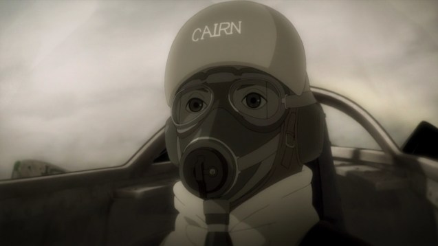 Wenn wir uns The Sky Crawlers ansehen, bemerken wir den deutlichen Unterschied zu vielen anderen Animes unserer Zeit. Anstatt auf knallbunte Farben zu treffen, stechen uns eher triste Braun- und Grautöne entgegen. Nur der Himmel wird mit einer strahlenden, azurblauen Farbe hervorgehoben. Der Verweis auf die Luftkämpfe soll auf diesem Weg jederzeit gewährleistet werden. Anstatt uns in tiefe Depression zu hüllen, schafft es der Film viel mehr uns an die Charaktere und deren Gefühlswelt zu gewöhnen und ihre Gedanken nachvollziehen zu lassen. Anstatt auch diesen Anime mit zu vielen dreidimensionalen Effekten zu versehen, ist den Zeichnern eine besondere Idee eingefallen. Während man am Boden bis auf ein bis zwei Ausnahmen von der Effektspielerei verschont bleibt, wird man während der Luftschlachten gerade zu von diesen bombardiert. Während das Geschehen am Himmel abläuft, sind nur manchmal gemalte Hintergründe auf zweidimensionaler Basis zu sehen. Die strikte Trennung zwischen zwei- und dreidimensionalen Szenen weist wieder einmal auf die Bedeutung der am Boden und der am Himmel stattfindenden Handlung hin.
