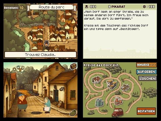 Auch der komplette Soundtrack, ein umfassendes Charakterarchiv und alle Videosequenzen können im Bonus-Bereich angeschaut werden – allerdings erst nach dem Durchspielen und auch nur, wenn wir genügend Pikarat gesammelt haben, welche wir nur beim erstmaligen Lösen der Rätsel erhalten können. Nebenbei sei erwähnt, dass die Rätsel unter anderem auch auf die Denkaufgaben von Professor Akira Tago zurückzuführen sind. In Japan wurde Tago durch seine Bücherreihe Atama no Taisou (zu Deutsch: Gymnastik für den Kopf) bekannt. Er zählt zu den meisten seines Fachs. Dank ihm wurden die Rätsel in Professor Layton und das geheimnisvolle Dorf zu einem wahren Genuss. Doch auch in anderen Bereichen kann das Nintendo-DS-Spiel punkten. Die schön gezeichneten Hintergründe wirken zwar leblos, lenken dafür die Aufmerksamkeit auf die wichtigen Punkte des Spiels – den Rätseln. Umso mehr freuen wir uns jedes Mal, wenn eine Videosequenz eingeleitet wird und diese sogar mit englischen Synchronsprechern vertont wird. Auch der Soundtrack kann sich hören lassen. In Saint-Mystère erklingen wunderschöne Dorfmelodien. Auch die Rätselmelodie fasziniert uns immer wieder aufs Neue, doch spätestens nach mehr als einhundert gelösten Rätseln fällt sie dann doch hin und wieder störend auf. Wir können Professor Layton und das geheimnisvolle Dorf im Grunde jedem Spielertypen empfehlen – nur ungeduldige Naturen sollten sich eher nach Alternativen umsehen. Wer alle 135 (+27 herunterladbare) Rätsel lösen möchte, ist für gut fünfzehn (bis fünfundzwanzig) Spielstunden beschäftigt und wird gut unterhalten.
