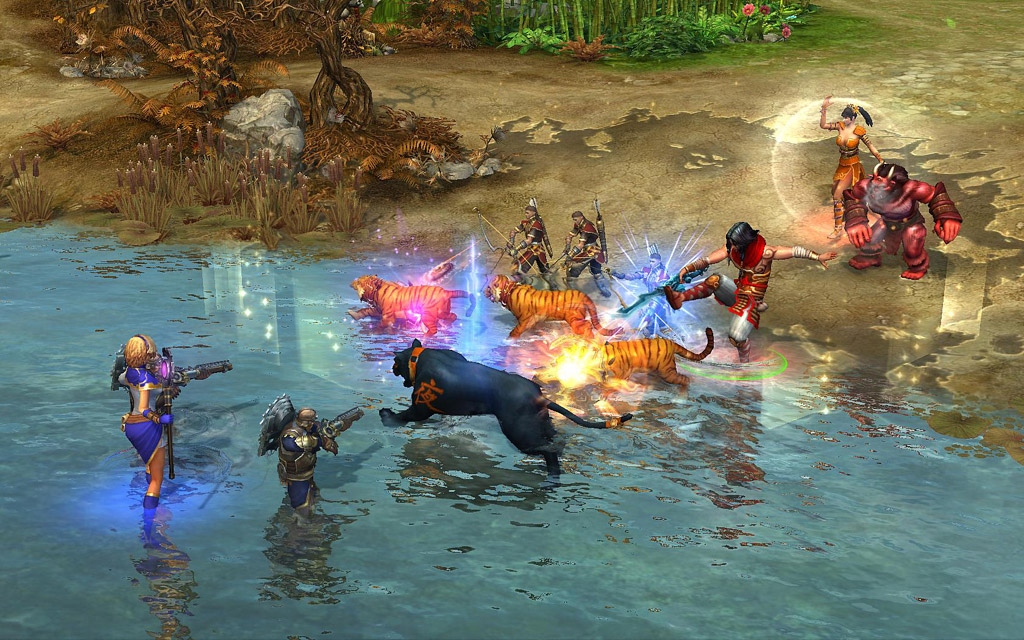 Lange Zeit haben wir nichts mehr vom russischen Entwicklerstudio gehört, doch mit Prime World meldet sich dieses zurück – ausgerechnet mit einem ansehnlichen Facebook-Spiel möchte Nival Interactive im Videospielmarkt wieder Fuß fassen, doch Obacht: Prime World ist kein Browser-Spiel! Um den Strategie-Rollenspiel-Mix spielen zu können, ist der Download eines Client unverzichtbar. Das soziale Netzwerk wird lediglich dazu verwendet, um Freunden die neuesten Errungenschaften mitzuteilen oder um sich mit diesen kurz zuschließen und in den Kampf zu ziehen. Selbstverständlich ist es auch möglich, mit zufällig zugeteilten Personen in Prime World einzutauchen, die aber auf Facebook registriert sein müssen – Mark Zuckerberg wird es freuen. Vor jeder Schlacht, bei der fünf Spieler gegen fünf Kontrahenten antreten, wählen wir einen Charakter aus einer mittelgroßen Riege aus. Neben den typischen Krieger- und Magier-Kandidaten gibt es auch innovative Klassentypen, etwa einen Flötenspieler, der uns doch stark an den Rattenfänger von Hameln erinnert und die kleinen Viecher auf Monster und anderes Gesocks losschicken kann. Gemeinsam kämpfen wir uns zum Zentrum der Karte vor und nehmen dabei Kontrollpunkte ein, wobei Teamwork gefragt ist – Alleingänger werden keine Erfolge feiern. Anschließend erstrahlt die einst düstere Landschaft in neuen Farben.