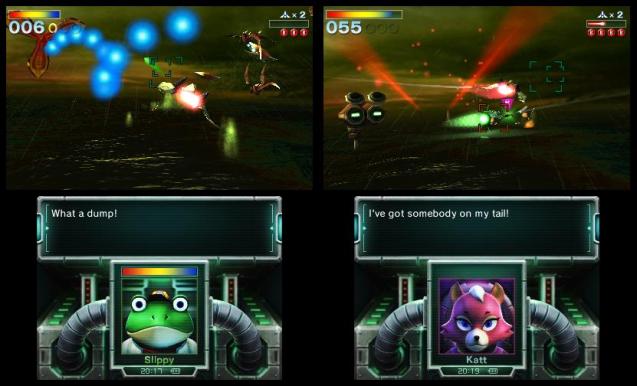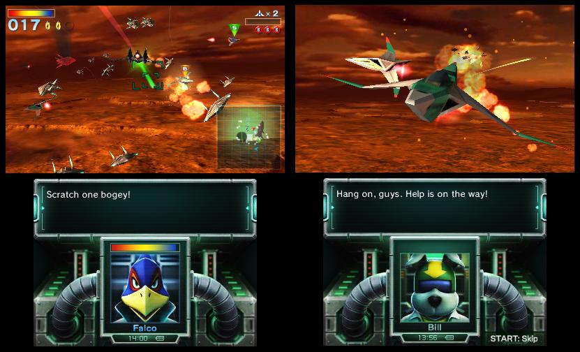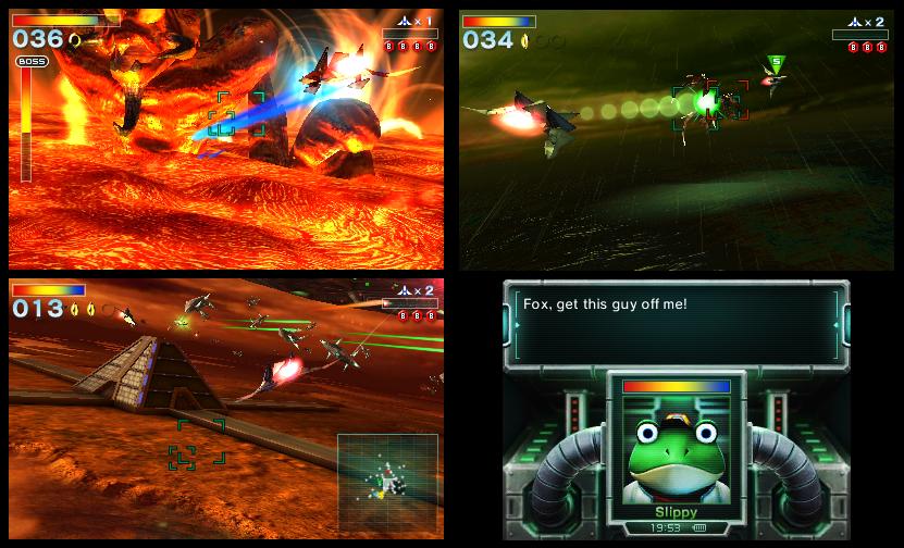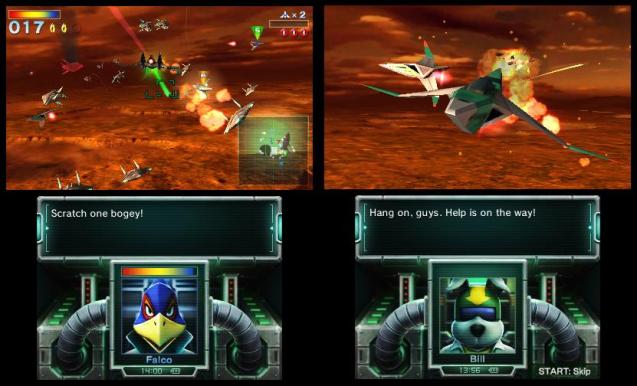 Wir räumen ein, dass die Rahmenhandlung des Titels alles andere als weltbewegend ist. Jene und ähnliche Geschichten erleben wir in Videospielen jeden Tag aufs Neue, doch konzentriert sich Star Fox 64 3D eher auf die Erzählweise, als auf die recht flache Handlung. Die Struktur war für die damalige Zeit bahnbrechend, denn so etwas kannte man vorher nur von wenigen Vertretern des Genres und selbst im Jahr 2011 hat sie nichts an ihrem Reiz verloren. Anstatt einfach nur von einem Level in den nächsten Spielabschnitt zu hetzen, machen wir in Star Fox 64 3D je nach unserer Spielweise auf unterschiedlichen Planeten oder Sektoren halt. Helfen wir zum Beispiel einem Team-Kollegen, der gerade von ein paar feindlichen Jägern verfolgt wird, diese loszuwerden, wird er uns als Dank womöglich einen anderen Weg durch oder eher gesagt aus dem Level zeigen. Insgesamt stehen für unsere Routenwahl ganze sechzehn Levels zur Verfügung, von denen wir je Spieldurchgang maximal sieben am Stück erleben werden. Unsere Reise durch das Lylat-System sollte gut durchdacht sein, denn es kann mitunter auch mal vorkommen, dass die Handlung vorsieht, dass ein Bossgegner einen unserer Kollegen mit Wucht auf die Oberfläche eines naheliegenden Planeten donnert. In diesem Falle müssen wir einen Umweg in Kauf nehmen und unserem Freund zur Hilfe eilen.