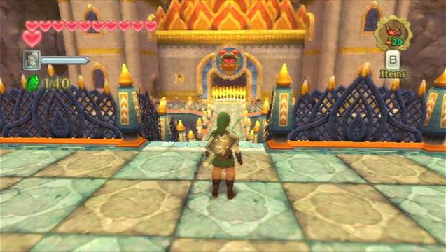 Trotzdem schlagen die Entwickler bei den Bosskämpfen ebenfalls neue Wege ein. So finden die Auseinandersetzungen nicht immer am Ende eines Dungeons statt. Wir kämpfen mitunter in luftigen Höhen auf dem Rücken unseres Vogels oder in einem tiefen Krater im Wald unter offenem Himmel. Hierfür werden wir allerdings nicht mit Herzcontainern belohnt, wie sonst üblich. Diese Feindkontakte dienen einzig und allein dazu, die Story voranzutreiben und das schaffen sie für sich genommen auch sehr gut. Nicht sonderlich gut gelungen ist (unserer Meinung nach) die Abenteurertasche. In dieser Tasche dürfen wir eine bestimmte Anzahl an nebensächlichen Items verstauen, wie etwa Schilde, Tränke gefüllt in Flaschen oder Beutel, damit wir mehr Bomben, Kerne oder Pfeile tragen können. Schilde können in Skyward Sword zerbrechen, wenn wir sie falsch einsetzen. Es nützt mittlerweile nichts mehr, einfach nur den jeweiligen Schild vor uns zu halten, wir müssen den Nunchuck bei Feindberührung ruckartig schnell nach vorne bewegen. Das erfordert genaues Timing und kann durchaus nerven, doch dazu später mehr. Angebrochene Schilde können im Wolkenhort-Basar repariert oder ersetzt werden. Dort ist es übrigens auch möglich, Items zu verbessern, in dem wir im Erdland die erforderlichen Zutaten in Form von Schätzen, wie Erze, Totenschädel oder Bernsteine finden. Obwohl wir im Basar auch Tränke kaufen können, können wir ihre Wirkung nur verbessern, wenn wir vielerorts auf Insektenjagd gehen. Wer das bereits in Animal Crossing gerne getan hat, wird die Suche nach den Krabbelviechern ebenfalls in Skyward Sword lieben.