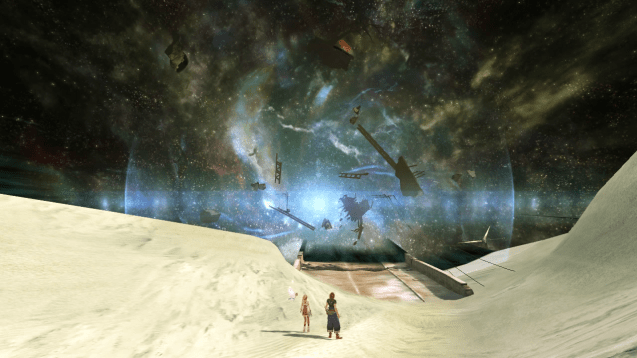 Eine bisher eher nutzlose Funktion ist das Sprungfeature, welches die Entwickler in den Titel eingebaut haben. Mit diesem Feature ist es möglich, den Gruppenführer auf dem offenen Feld springen zu lassen. In einer Stunde Spielzeit haben wir diese Option gerade ein oder zwei Mal benutzt. Sicherlich soll Final Fantasy XIII-2 nicht zum Jump ’n’ Run mutieren, doch ein paar Sprungelemente mehr hätten dem Gameplay sicherlich nicht geschadet. Minispielfreunde sind in Final Fantasy XIII-2 ebenfalls gut aufgehoben, zumindest war von einem Spielchen schon in der Demoversion auf der PlayStation 3 etwas zu sehen. Von der Story in ein Zeitfenster gelenkt, müssen wir dort über schwindende Platten laufen und dabei Kristalle einsammeln. Wirklich unsere Köpfchen mussten wir uns da nicht anstrengen, doch wir sind schon sehr auf das Endprodukt gespannt und was uns im späteren Spielverlauf an Rätseleinlagen erwartet. An vielen Ecken und Kanten merkt man, dass sich Square Enix die Zeit genommen und sich bemüht hat, auf die Wünsche der Fans einzugehen. Zwar können wir noch nicht genau sagen, ob sich auch die künstliche Intelligenz der Charaktere (an der wir im Vorgänger an der einen oder anderen Stelle manchmal verzweifelt sind) verbessert hat, doch alleine schon, dass wir nun nicht mehr ständig einen Kampf neustarten müssen, wenn der Gruppenanführer besiegt wurde, lässt uns auch hier auf Verbesserungen hoffen. Optisch und akustisch macht der Titel auf der PlayStation 3 eine gute Figur. Sicherlich ist der Soundtrack wieder nicht auf der Höhe mit der Qualität der früheren Uematsu-Werke, doch steht er im Einklang mit dem Vorgänger.