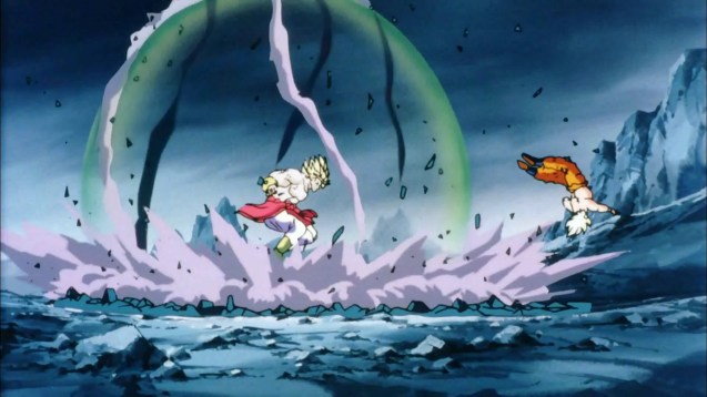 An den Dragonball Z: Movies 5 – 8 wurde optisch sichtlich gearbeitet. Während wir bei der vorherigen Box teils noch von VHS-Qualität gesprochen haben, fallen die Farben bei diesen Filmen deutlich kräftiger aus und auch ansonsten macht das Bild eine bessere Figur. Dazu sei aber gesagt, dass der Ton im japanischen Original altersbedingt immer noch etwas kraftlos wirkt. Obwohl dieser laut Packungsangabe in Dolby Digital 2.0 vorliegen soll. Die deutsche Synchronisation verfügt jedenfalls über dieses Tonformat und kommt (bis auf gelegentliche Ausnahmen) mit den Synchronsprechern aus der Serie daher. Den japanische Originalton kann man zwangsweise leider nur mit deutschen Untertiteln zuschalten. Um die Tonspur zu wechseln müssen wir auch immer wieder umständlich ins Menü zurückkehren. Warum uns hier technische Hindernisse in den Weg gelegt werden, verstehen wir absolut nicht. Ebenfalls ist es wieder fraglich, warum man sich dafür entschieden hat, die Songs wieder einmal aus den Filmen zu streichen und stattdessen einfach nur Musik laufen hat lassen. Es wäre doch sicherlich kein Problem gewesen (zumindest die japanische Version) kurzzeitig auf der Tonspur unterzubringen. Rache für Freezer kommt mit 47, Coolers Rückkehr und Angriff der Cyborgs jeweils mit 44 und Der Legendäre Super-Saiyajin mit 69 Minuten daher. Das ergibt zusammen circa 204 Minuten (auf der Box sind fälschlicherweise wieder 210 Minuten als Laufzeit angegeben), die voller action-geladener Kämpfe und überraschenderweise mit ausgeklügelten Handlungssträngen gespickt sind. Dragonball-Z-Fans werden auch mit der zweiten Filmbox wieder einmal glücklich werden.