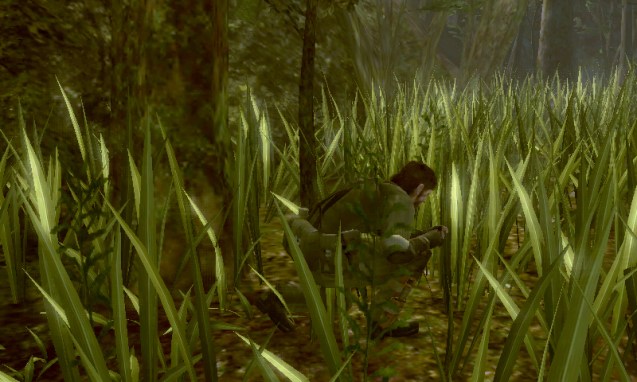 Nichtkenner der Serie werden sich nämlich leider nur sehr schwer zu Recht finden, da viele Charaktere aus den Vorgängern auftauchen und dem anfangs unwissenden Spieler nicht vollends vorgestellt werden. Außerdem tragen die Spezialfähigkeiten der Bösewichte, zum Beispiel Hornissen auf uns loszujagen oder unseren virtuellen Körper mit Millionen von Volt zu schocken, bei dem einen oder anderen Spielertyp nur zur Verwirrung bei, da die eigentlich ernsthafte Handlung so zu stark an Surrealität gewinnt. Obwohl die Story an vielen Stellen überhand nimmt und uns kaum Möglichkeit lässt, direkt im Spiel etwas zu bewirken (ständig werden wir von Verbündeten über Funk kontaktiert oder eine der vielen Zwischensequenzen wird eingespielt), kann das Gameplay trotzdem überzeugen. Wie im großen Vorbild auf der PlayStation 2 müssen wir mit Naked Snake heimlich das Gebiet infiltrieren. Überall im Dschungel hält das Wachpersonal nach Eindringlingen Ausschau. Um nicht gesehen zu werden, müssen wir schnell Verstecke aufsuchen, wozu sich im Dschungel naturgemäß das hohe Gras ganz besonders gut eignet. Unterstützt werden wir dabei von unserer Kleidung und Gesichtsfarbe. Über das Menü dürfen wir allzeit die Farbe des Anzugs ändern und uns sogar Kriegsbemalung ins Gesicht schmieren. Je besser wir uns an die sehr unterschiedlichen Gegebenheiten anpassen, desto geringer ist auch die Chance, von den Feinden entdeckt zu werden. In der Nintendo-3DS-Fassung können wir sogar Fotos aus unserer echten Umgebung schießen, die wir anschließend auf unsere Ausrüstung sprühen. Eine nette Idee, aber fast vollkommen sinnlos – die spielinterne Farbwahl ist bereits ausreichend für unseren Einsatz.