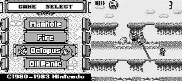 In Manhole befindet sich Mr. Game & Watch in der Mitte des Bildschirms, oberhalb und unterhalb ist jeweils eine Brücke mit jeweils zwei Löchern zu sehen, die abgedeckt werden möchten. Sobald allerdings eine Spielfigur über die Abdeckung gelaufen ist, fällt diese wieder in den Abgrund und wir müssen sie nochmals abdichten. Je mehr Charaktere den Bildschirm passieren, desto schneller läuft das Spielgeschehen ab. Sobald eine Figur abstürzt, pausiert das Spiel und setzt beim Neubeginn wieder an der Stelle an. Ebenfalls vor Abstürzen, sollen die Leute im Fire-Spiel gesichert werden. Diese springen der Reihe nach aus einem brennenden Gebäude und müssen mit einem Sprungtuch gerettet und sozusagen in den Krankenwagen jongliert werden – auch hier gilt, je mehr Leute gesprungen sind, desto schneller läuft das darauffolgende Spielgeschehen ab. Das kostet dann und wann schon mal unsere Nerven. Immerhin können wir uns im Spiel Octopus abreagieren, welches durchaus einfach ausfällt, wenn man sich nur ordentlich und geduldig anstellt. Hier gilt es einen Schatz vom Meeresgrund aufzusammeln und dabei den Armen des Oktopus auszuweichen. Hitziger geht es dann schon bei Oil Panic zur Sache, denn in diesem Spiel müssen wir das heraustropfende Öl aus einer Leitung auffangen und anschließend einem Freund außerhalb des Gebäudes zu werfen. Wer dabei nicht auf Timing achtet, verliert sehr schnell das Spiel und darf von Neuem anfangen.