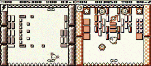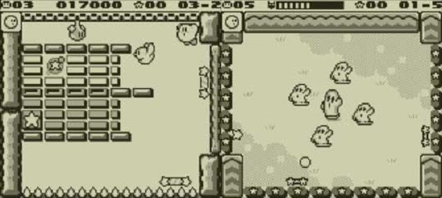 Wer jetzt aber hofft, auf ein ebenfalls so angenehmes Spieltempo zu stoßen, der irrt. Während die ersten Levels noch relativ einfach gestaltet sind, erwarten uns nach der ersten Welt bereits vielfältigere Aufgaben. Es gibt zum einen große quadratische Blöcke, die sich bei Berührung in vier kleine Quadrate aufteilen, sondern auch dunkle Blöcke. Diese können wir nur mit dem von uns bekannten Kirby aus dem Weg räumen. Um die Kugel kurzfristig in die Kirby-Form zu bringen, müssen wir kurz vor der Berührung mit dem Schläger auf die A-Taste hämmern – dunkle Blöcke sind somit passé. Dies ist allerdings nicht Kirbys einziger Auftritt in dem Titel. Da ab einem bestimmten Zeitpunkt auch Gegner über das Spielfeld marschieren, die wir mit der Kugel abschießen müssen, können wir von diesen gelegentlich auch eine Spezialfähigkeit mopsen. So ist es möglich, dass wir Kirby auf Knopfdruck in einen Stein verwandeln, um alle Blöcke unter ihm auszuradieren. Ähnliches funktioniert auch mit der Funkefähigkeit und der Option Verbrennung. Etwas anders spielt sich die Nadelfähigkeit. Mit dieser können wir nur wenig Schaden anrichten, doch wenn wir uns in der Nähe eines Schlägers befinden, kann die Kugel an diesen wieder andocken und wir dürfen die Richtung neu bestimmen. Machen wir aber einen Fehler, kann Kirby die Fähigkeit sehr schnell für den Rest der Welt verlieren.
