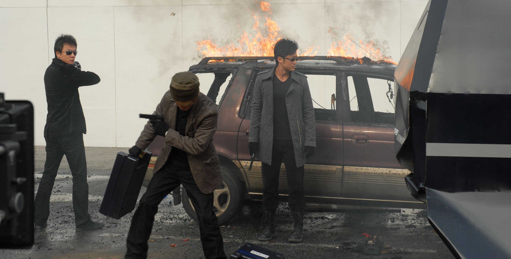 Aber auch die anderen Schauspieler, etwa Elanne Kwong, Candy Liu und Lisa Lu, machen Invisible Target zu etwas Besonderem. Respekt verdient hat vor allem Lisa Lu, die im hohen Alter noch ihren Text in Kantonesisch gelernt hat. In der Rolle von Wai King-hos Großmutter verleiht sie den eher heiteren Stellen des Films einen ganz besonderen Charme. Auf der Blu-ray liegen zwei Tonspuren vor. Zum einen können wir den Film auf Kantonesisch genießen und auf Wunsch deutsche oder niederländische Untertitel hinzuschalten, oder uns auch an der sehr guten deutschen Synchronisation erfreuen. Egal für welche Tonspur wir uns entscheiden – der Film sorgt mit seinen tollen Schauspielern, der durchdachten und zusammenführenden Story, sowie der brachialen Action und den atemberaubenden Stunts 125 Minuten lang für sehr gute Unterhaltung. Der im 16:9-Format (2,35:1) gehaltene Film wirkt in 1080p sehr scharf, doch an sehr, sehr wenigen Stellen wirkt das Bild unschön körnig. Dem Gesamtbild schadet dies aber nicht, denn auch das Bonusmaterial, welches leider nur in SD-Qualität vorliegt, kann um die neunzig Minuten lang unterhalten beziehungsweise über den Film informieren. Unter das Zusatzmaterial fällt zum einen das Making-of, die Premierenfeier, mehrere Vergleiche vom Storyboard zum Film und bewegtes Bildmaterial zu den Stunts und der Action. Im Vergleich zu anderen Filmen der Machart fallen leider keinerlei Höhepunkte auf. Schade. Dennoch überzeugt Invisible Target vom Anfang bis zum tollen Schlusslied Goodbye von Chang chen-yue und gehört definitiv zum Pflichtprogramm eines jeden Fans von Hongkong-Filmen!