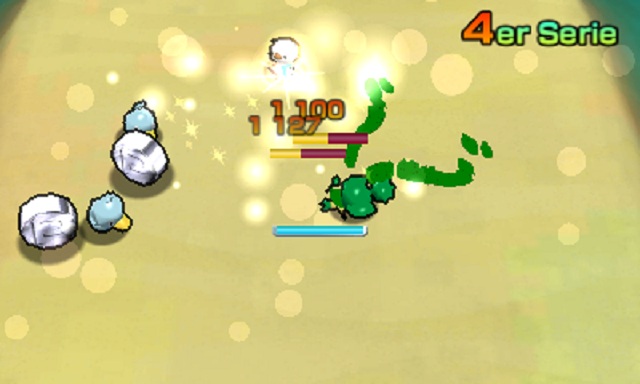 Wer die Preise für Attacken in den Städten als zu hoch empfindet, der sollte Super Pokémon Rumble unbedingt für StreetPass aktivieren. Jeder andere Super-Pokémon-Rumble-Spieler, den wir unterwegs treffen, verirrt sich auch in unseren Spielzeugladen und hinterlässt dort ein paar Münzen. Keine Sorge – der eigentliche Kontostand des jeweiligen Besuchers wird nicht dezimiert. Es ist nur ein feiner Nebeneffekt! Gut gerüstet geht es dann nicht nur in die Areale, sondern auch in die unterschiedlichen Turnierformen. Haben wir genügend starke Pokémon gesammelt, können wir uns etwa im Battle Royale versuchen. In diesen Kämpfen starten wir mit einem Pokémon und dürfen es nicht wie im sonstigen Spiel durch ein anderes jederzeit ersetzen, sondern müssen mit diesem gegen die feindliche Überzahl im Kampf antreten, bis es besiegt wurde. Dann haben wir insgesamt zweimal die Möglichkeit es auszutauschen. Diese Option bleibt uns in den Team-Kämpfen versperrt, denn hier treten wir gleich mit drei Monstern gleichzeitig an und kämpfen genau so lange um den Sieg, bis wir diesen errungen oder schlussendlich verloren haben. Die eingangs erwähnten Frontalkämpfe kommen erst im letzten Drittel zum Einsatz. Hier müssen wir im Vorfeld eine große Anzahl an starken Pokémon um uns scharen, bevor wir zum Angriff blasen. Auf dem Schlachtfeld ist dann aber kaum ein spielerischer Anspruch vorhanden.