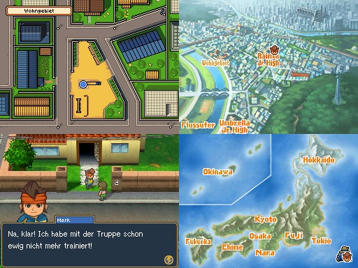 Wir verraten euch an dieser Stelle natürlich nicht, was es denn mit den vermeintlichen Aliens auf sich hat, doch wir möchten euch versichern, dass die Grundfesten der Handlung spätestens im vorletzten der zehn Kapitel Sinn ergeben. Zufriedenstellend ist auch das nicht, da sich die Geschichte der Raimon-Elf wieder in die Surrealität stürzt. Das wirkte im ersten Teil bereits aufgesetzt, doch übertrumpft sich das in Inazuma Eleven 2 sogar. Freunde von übertriebenen Handlungen mit entsprechender überzogener Inszenierung dürfen aber auch vom zweiten Teil des Fußballrollenspiels angesprochen fühlen. Die Story wird aber nicht nur in Tokio und den Außengebieten der Metropole vorangetrieben, sondern in ganz Japan. Zusammen mit unseren virtuellen Freunden bereisen wir das Land der aufgehenden Sonne vom eisigen und schneebedeckten Hokkaidō im Norden bis hin zum sonnigen Okinawa. Das verspricht zwar in vielerlei Punkten mehr geographische Abwechslung, doch hätten wir uns sehr darüber gefreut, wenn wir mehr über kulturelle Hintergründe der Präfekturen, Sehenswürdigkeiten und Städte erhalten würden. Wir schnappen nämlich leider nur Bruchstücke in Gesprächen mit einzelnen Personen auf. So erfahren wir in Kyōto beiläufig etwas ein Haiku von Matsuo Bashō (Even in Kyōto). Solche Stellen reduziert der Fukuokaer Entwickler Level-5 leider auf ein Minimum.