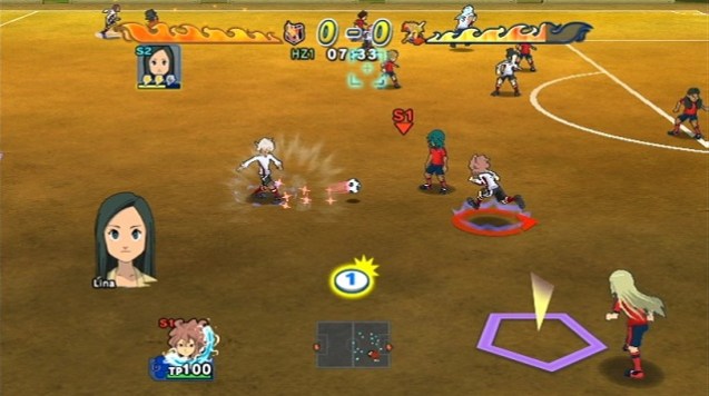 Der Schwerpunkt in Inazuma Eleven Strikers liegt somit auf keiner Story, sondern auf dem sehr viel actionreicheren Spielsystem. Während wir in den DS-Rollenspielen die Spielwelt nach Herzenslust erkunden und die Handlung weitgehend auktorial erfahren konnten, werden wir hier auf Menüs beschränkt, um zu unserem nächsten Zielort zu gelangen. Sind wir dort angekommen, müssen wir gleich das nächste Match bestreiten. Anders als in den Handheld-Versionen müssen wir hier nicht die Spielzüge einzeichnen. Stattdessen sind wir es, welche gleich die Kontrolle der Spieler übernehmen. Das funktioniert dann ähnlich wie in Fifa oder Pro Evolution Soccer. Nach dem Anstoß passen wir den Fußball zwischen den einzelnen Charakteren hin und her, um schlussendlich ein Tor schießen zu können. Hier unterscheidet sich der Titel aber von den erwähnten Fußballserien, denn wie in den DS-Rollenspielen führen unsere Spieler eine Spezialfähigkeit nach der anderen aus. Diese müssen geschickt eingesetzt werden, da auch hier Technikpunkte den Einsatz einer Fähigkeiten einschränken. Es ist jetzt leider aber auch im Grunde fast egal, von wo aus wie in der gegnerischen Spielhälfte den Ball aufs Tor schießen. Hauptsache, der Schuss wird mit gedrückter B-Taste lange genug aufgeladen, um gegen die Spezialtechnik des Torhüters zu bestehen.