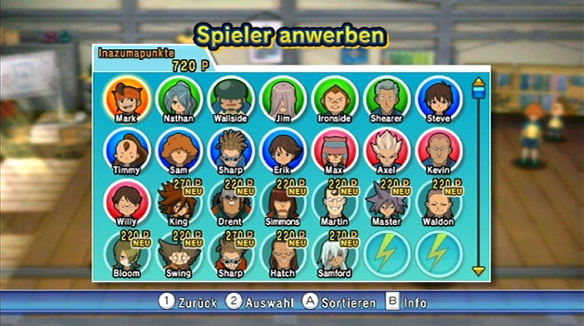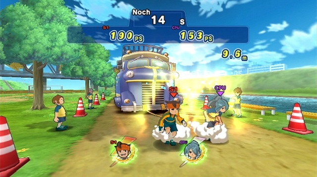 Es gibt in Inazuma Eleven Strikers zwar keine Erfahrungspunkte mehr, doch trotzdem steigen unsere Technikpunkte nach einem Sieg bei jedem Charakter an. Selbiges erreichen wir auch durch Training in Minispielen. Da muss mal dann auch schon mal ein Autoreifen oder gleich der ganze Inazuma-Tourbus hinter einem hergezogen werden. Schießen wir Fußbälle mit Gummiseilen angekettet ins Tor, können wir ebenfalls unsere maximalen Punkte verbessern und auch noch die Freundschaft stärken. Warum wir diese Minispiele auch außerhalb des Clubhauses ausprobieren dürfen, ist uns rätselhaft. Dort steigern wir nämlich keinerlei Werte unserer persönlichen Fußballmannschaft. Nach dem Sieg gegen eine Mannschaft, dürfen wir mit verdienten Inazuma-Punkten sogar deren Spieler abwerben und in unser Team integrieren. Während in den DS-Titeln im Grunde mehr als eintausend unterschiedliche Charaktere zum Anwerben bereitstanden, sind es in Inazuma Eleven Strikers gerade noch 150 Figuren, aus denen wir unsere Mannschaft zusammenstellen. Wer jetzt darauf hofft, dass die Charaktere nun nicht mehr so austauschbar wirken, wird enttäuscht sein. Dadurch, dass es auch keine richtige Story gibt, hat jeder Spieler seine Vor- und Nachteile. Nicht mehr und nicht weniger.