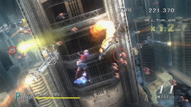 Die Bosskämpfe sind also spannend und herausfordernd, doch die kleinen Gegner in den acht Stages lassen dieses Gefühl leider nicht aufkommen. Viele Gegner sind Kanonenfutter, die dazu dienen, unseren Punktemultiplikator mit jedem Abschuss in die Höhe zu treiben, doch dann und wann tauchen auch schon mal größere und gepanzerte Kreaturen auf, die uns das virtuelle Leben zur Hölle machen können, wenn wir nicht schnell reagieren. Während solche Gestalten zum Ende hin häufiger auftauchen, lässt das Leveldesign nach der fünften Stage nach. In der ersten Hälfte des Spiels erkunden wir schon mal einen japanischen Wald oder müssen in einem Tunnel einer Fabrik sich schließenden Türen so ausweichen, dass wir immer durch die offene Stelle der Türen düsen. Später fehlt uns diese Verspieltheit einfach, doch wir sind zumindest froh darüber, dass wir uns automatisch durch die Levels bewegen und wir nur die vordere Ebene zum Steuern des Charakters zur Verfügung haben, denn Successor of the Skies wäre sonst sicherlich auch für den talentiertesten Spieler eine Zumutung. Unzumutbar ist fast schon die antiquierte Grafik. Wir sind uns sehr wohl bewusst, dass die Wii nicht die leistungsstärkste Konsole ist, doch verwaschene Texturen und detailarme Charaktere lassen das Spiel so wirken, als sei es fast noch für das Nintendo 64 oder den Gamecube konzipiert.