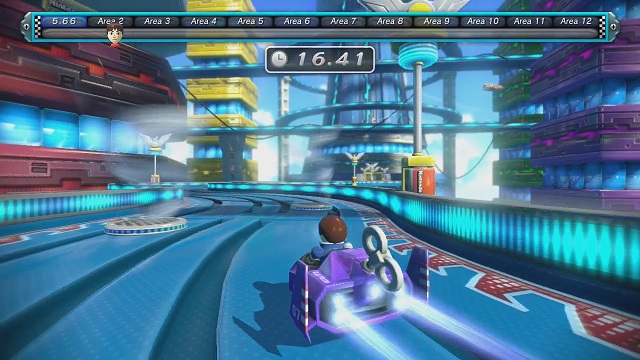 Die zwölf Attraktionen unterteilen sich in drei Typen. Sechs Attraktionen sind ausschließlich den Solisten vorenthalten, denn hier steht die muntere Punktejagd im Vordergrund. In Yoshi’s Fruit Cart müssen wir mit dem grünen Dinosaurier eigentlich nur eine Strecke abfahren, um diverse Obstsorten einzusammeln. Während jedoch die Früchte auf dem Fernsehbildschirm zu jeder Zeit ersichtlich sind, fehlen diese auf dem Bildschirm des Wii U GamePads. Über dieses geben wir mittels des Stylus die Strecke ein, die Yoshi ablaufen soll, um die Früchte in seinen Warenkorb zu legen. Verpassen wir dabei auch nur eine Frucht, öffnet sich das Tor am Ende des Weges nicht. In Donkey Kong’s Crash Course müssen wir einen Parcours abfahren und dabei darauf achten, dass wir unsere Spielfigur nicht zerstören. Eine zu heftige Kollision mit der Umwelt reicht aus, dass diese in ihre Einzelteile zerfällt. Mit Senken des Wii U GamePads und Zuhilfenahmen der beiden Sticks bewegen wir sie durch den Parcours und nehmen somit Einfluss auf diverse sich bewegende Plattformen. Sobald die Figur mit hohem Tempo an eine Wand stößt oder auch nur von einer kleinen Anhöhe versehentlich hinunterfällt, verlieren wir einen von mehreren Versuchen. Nur wer hier einen kühlen Kopf behält und es sich dennoch nicht nehmen lässt, schnell an Geschwindigkeit zu gewinnen, kann hier ordentlich punkten.