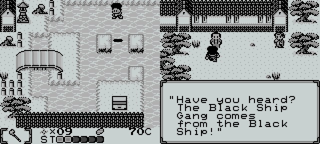 In Japan erfreut sich die Serie einer gewissen Beliebtheit, denn anders ist es nicht zu erklären, dass zwischen 1986 und 2011 über dreißig Spiele des Franchises veröffentlicht wurden. Eines davon ist Mystical Ninja: Starring Goemon für den GameBoy, welches im Heimatland unter dem Titel Ganbare Geomon: Kurofune Tou no Nazo im Jahr 1997 erschien. Die Handlung des Spiels, obwohl sie in dieser Form nicht gänzlich im Spiel präsentiert wird, beginnt damit, dass das Seidengeschäft Echizen-ya in Edo (heutzutage besser bekannt als Tokio) von unbekannten Übeltätern überfallen wird. Die Einbrüche häufen sich in der Burgstadt und das Domizil des Lords wird ebenfalls nicht verschont. Zur gleichen Zeit wird in der Bucht von Edo wiederholt ein schwarzes Schiff mit gehisster Piratenflagge entdeckt. Es liegt nahe, dass die Black Ship Gang hinter den Vorfällen steckt. Goemon, Ebisumaru, Sasuke und Yae beschließen, dass die Diebe aufgehalten werden müssen, als wie bereits gesagt der Lord ebenfalls beraubt wird. Es ist jetzt aber so, dass Yae plötzlich verschwunden ist und sich die drei Freunde nun auch noch auf die Suche nach der Ninja-Kämpferin machen und sie aus den Klauen der Black Ship Gang befreien. Die Reise unserer drei Helden führt sie gleich durch fünf Kapitel, die über die Karte als Levels deklariert werden. Der Schwierigkeitsgrad ist dabei allerdings extrem hoch!