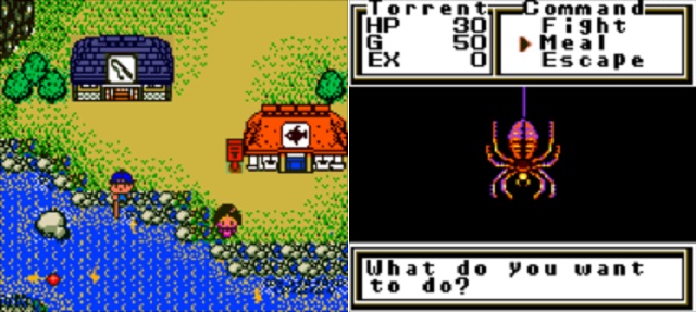 Dieses Spiel wiederholt sich so lange, bis der Fisch in unserem Eimer gelandet ist. Danach steht der Weg ins Dorf an, um den Fisch zu verkaufen. Das ist auch bitter nötig, denn in der Natur lauern gierige Tiere wie Krähen, die unsere Fische nur zu gerne mopsen wollen. Sobald wir auf ein Tier stoßen, öffnet sich sogar ein recht überschaubarer Kampfbildschirm. Hier wählen wir aus, ob wir das Tier angreifen oder Nahrung zu uns nehmen. Das ist deshalb wichtig, denn je weniger Lebenspunkte wir noch übrig haben, desto schwächer fallen unsere Angriffe aus. Für besiegte Gegner regnet es dann stilecht Erfahrungspunkte, durch die wir die Energie unseres Helden nach und nach in die Höhe treiben. Wenn wir gefangene Fische im Laden verkaufen, erhalten wir dafür wiederum Geld, welches wir in neue Ruten, größere Haken und neue Lebendköder investieren. Legend of the River King GB bietet also einen ökonomischen Kreislauf, der sich wie in ähnlichen Spielen wie Harvest Moon: Geschichten zweier Städte schließt. Ganz besonders an Fans der Bauernhofsimulation richtet sich das Spiel, denn wer sich in den typisch japanischen Look, die putzigen Animationen und niedlichen Grafiken verliebt, einem dazu passenden Soundtrack nicht abgeneigt ist und das Angeln nicht mehr nur als pure Nebenbeschäftigung erleben will, liegt bei Legend of the River King GB genau richtig.