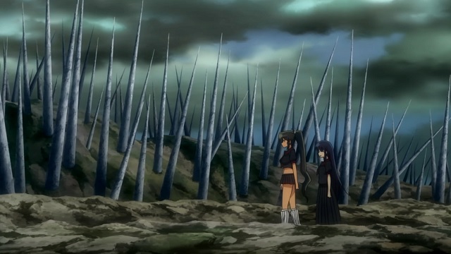 Die Schlangen-Schule für Mädchen hat ihre besten Shinobi geschickt, um Asuka, Katsuragi, Ikaruga, Yagyū and Hibari zu testen. Kiriya kann nicht eingreifen, denn als er sich umdreht, befindet sich bereits ein Bannkreis um die gesamte Akademie. Dieser ist so stark und erinnert ihn an eine seine ehemaligen Schülerinnen. Währenddessen werden die Freundinnen in den Hallen der Akademie voneinander getrennt, wodurch jede Shinobi auf eine Gegnerin trifft. In allen Ecken und Enden des Gebäudes entbrennen Kämpfe, in denen ein paar Geheimnisse ans Tageslicht kommen und zudem noch ein paar Einblicke in die Kämpfernaturen von Helden und Bösewichtern gegeben werden. Während die Kämpfe zwar spannend sind, wird jegliche Auseinandersetzung natürlich mit den weiblichen Geschlechtsmerkmalen betont. Ohne auch nur eine Brustwarze spezifisch darzustellen, wird hier viel mit überproportionalen Brüsten und nackter Haut gespielt. Zumal eine Shinobi ja fast nackt sein muss, um ihre maximale Kampfkraft entfalten zu können. Erklärt wird dies abermals durch den aus den ersten Folgen bekannten Erzähler. Das ist aufschlussreich, lenkt aber vom Wesentlichen natürlich nicht ab. Viel interessanter ist da schon das Auftauchen einer schwarzen Katze, die eine Bedeutung für Kiriya haben könnte. Das plötzliche Auftauchen von Hanzō bringt Kopfzerbrechen mit sich.
