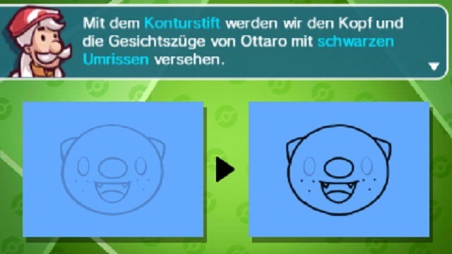 Die Lektionen in Pokémon: Art Academy bauen wie in der Art-Academy-Reihe aufeinander auf. Aufgebaut sind diese so, dass Professor Albrecht uns zeigt, was in der jeweiligen Phase zu tun ist. Anschließend sind wir an der Reihe und führen Pinselstriche und Co. nach. Zudem sind die Lektionen in verschiedene Kurse unterteilt. Im Anfängerkurs lernen wir einfache Formen kennen und in welcher Reihenfolge wir beim Malen arbeiten. Weitführende Hilfe gibt es im Studentenkurs, auf den später der Absolventenkurs folgt. Vom anfänglichen Erstellen von Konturen, dem Ausfüllen von Teilbereichen bis hin zum Schraffieren und Skizzieren erlernen wir viele hilfreiche Techniken. In der Realität ist das Arbeiten mit Radiergummi und mehreren Ebenen so vielleicht nicht machbar, doch gefallen uns diese vielen Optionen sehr. Kaum haben wir ein Pokémon gemalt, wollen wir auch schon das nächste auf die digitale Leinwand bannen. Haben wir uns noch bei New Art Academy darüber beschwert, dass es keine Bewertungskriterien für von uns gemalten Bildern gibt, setzt Pokémon: Art Academy neue, wenn auch kleine, Maßstäbe. Für ein beendetes Werk erhalten wir entweder eine goldene oder eine silberne Medaille. Das Spektrum könnte zwar größer sein, doch finden wir es schade, dass uns der Titel die Bewertungskriterien nicht offenlegt. Potential verschenkt!