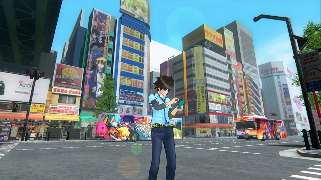 Die Handlung von Akiba’s Trip ist absolut abgefahren. Sie beinhaltet nicht nur den Konflikt zwischen Synthisters und Nighteaters, sondern auch viele Anspielungen auf die Populärkultur Japans. Bei unseren Streifzügen durch Akihabara entdecken wir zusätzlich Plakate, die auf Anime oder Manga hinweisen. Selbst Trailer zu Videospielen laufen an verschiedenen Stellen der Stadt auf Leinwänden immer und immer wieder. Wer zudem nicht aufpasst, bekommt den einen oder anderen Flyer zu real existierenden Geschäften in die Hand gedrückt. Die sind im Spiel auch komplett auf Japanisch einsehbar. Wer des Japanischen nicht mächtig ist und vor allem die Silbenschrift Katakana nicht beherrscht, wird sich bei Nebenaufgaben anfangs wohl etwas schwertun. Über die Kartenfunktion des Spiels wissen wir zwar schnell, in welchem der instanzierten Gebiete wir die die Aufgabe fortsetzen, doch anschließend erhalten wir nur eine vage Ortsbeschreibung. Nicht jedes Geschäft verfügt nämlich auch über ein Ladenschild, das in Rōmaji geschrieben ist. Je länger man sich aber durch die Straßen bewegt, desto schneller fällt auf, welche der herumirrenden Seelen Ansprechpartner für solche Aufgaben sind, da die sich in der Regel nicht von der Stelle bewegen. Blöd ist hier nur, dass Nichtspielercharaktere erst nach den Texturen geladen werden und für einige Zeit somit absolut nicht sichtbar sind.