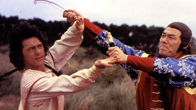 Das macht natürlich alles keinen Sinn, da sich der Film nicht um die Kampfsportart Karate, sondern Kung Fu dreht. Aus solchen Fehlern lernt man jedoch auch in Amerika nicht, denn wenn man nur ein paar Jahre zurückblickt, fällt einem direkt das gleichnamige Remake von Karate Kid ein. Obwohl Jackie Chan hier in einer der beiden Hauptrollen zusehen war, hat es ihn wohl nicht gestört, die eigene Kultur für eine andere, die inhaltlich absolut nichts mit dem Film zu tun hat, aufzugeben. Entsprechend dürfte Chan auch egal sein, was man hierzulande mit Half a Loaf of Kung Fu, so der englische Titel von Karate Bomber, gemacht hat. Ähnlich geht es auch dem Helden des Films, Jiang – ironischerweise gespielt von Chan. Dieser ist ein sorgloser Taugenichts und verbringt seine Zeit damit als Tagelöhner zu arbeiten. Eines Tages macht er ein Nickerchen zwischen den Ästen eines Baumes, als plötzlich der tägliche Trubel am schwarzen Brett losgeht und Jiang den Drang verspürt, dort einmal nach dem Rechten zu sehen. Es wird ein Leibwächter für einen adligen Mann gesucht. Schnell reißt Jiang das Blatt vom Aushang ab und begibt sich zum Anwesen des Herrn. Nach kurzer Überlegung wird er gleich eingestellt und in das Hausleben eingeführt. Sein Arbeitgeber beherbergt auch noch einen weiteren Hausgast, dem Jiang tunlichst aus dem Weg gehen sollte, er es aber nicht tut.