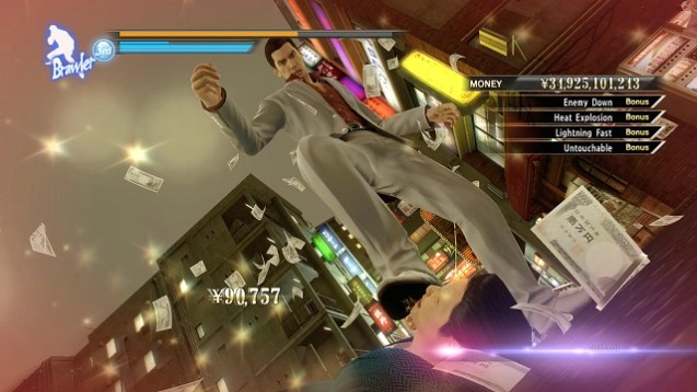 Das Gameplay des Spiels besitzt dabei zwei Grundpfeiler: Reden und Prügeln – meistens auch in dieser Reihenfolge angewandt. Das reicht aber vollkommen, denn beide Elemente besitzen genug Tiefgang und wurden sehr unterhaltsam umgesetzt. Die Dialoge punkten mit viel Humor und kreativem Inhalt und halten nicht selten mehrere Antwortmöglichkeiten für Kiryū und Majima bereit, bei denen überprüft wird, ob wir auch schön aufgepasst haben. Als Yakuza lassen sie aber nicht selten die Fäuste sprechen und nehmen es mit ganzen Banden von Gegnern auf. Jede Figur besitzt dabei spezielle Kampftechniken, die sich völlig unterschiedlich spielen. Kiryū kann entweder schnell und flink eine Menge Hiebe austeilen oder im Brawler-Modus besonders brachiale Angriffe entfesseln. Majima dagegen nutzt die neumodischen Breakdance-Bewegungen dazu, um Gegnern besonders stilvoll das Fressbrett zu polieren. Herumstehende Gegenstände wie einen Prügel oder auch mal ein Motorrad binden beide gerne in Kämpfe ein. Was durch seine comichaften Elemente lustig anmuten mag, wurde trotzdem sehr brutal in Szene gesetzt. Ein richtig gutes Treffer-Feedback verpasst den Schlägen noch mehr Härte. Finishing Moves werden mit besonderen Kameraperspektiven eingefangen, die durch ihre effektive Wuchtigkeit die Freigabe ab 18 Jahren auf jeden Fall rechtfertigen.