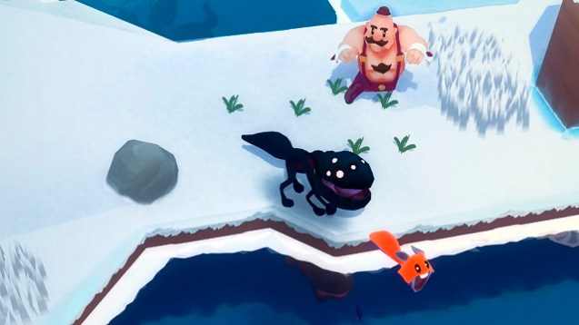 Texte sind in World to the West jedoch nebensächlich, denn in erster Line konzentriert sich das Spiel aufs Gameplay. Dazu sei direkt einmal gesagt, dass sich sämtliche Charaktere recht unterschiedlich spielen. Lumina experimentiert beispielsweise mit Elektromagnetismus – kein Wunder, hat Entwicklerstudio Rain Games Ende 2013 mit Teslagrad schon einmal unter Beweis gestellt, dass ihnen das Konzept am Herzen liegt. Knaus hingegen buddelt sich durch den Boden oder flitzt mit magischen Schlittschuhen über Wasseroberflächen und Miss Teri kann sich mit ihrem Schal ähnlich der Peitsche in Secret of Mana über Abgründe ziehen oder gar Gegner manipulieren, um sie für ihre persönlichen Zwecke zu missbrauchen. Mit Muskelprotz Clonington können wir zudem Wände einreißen oder Gegner verdreschen. Gewechselt werden die Charaktere stets an Totempfählen, die in der Spielwelt verteilt sind. Ärgerlich ist dabei, dass jede Figur einen Totempfahl einzeln besucht haben muss, damit wir ihn für Lumina, Knaus und Co als Schnellreisepunkt verwenden dürfen. Daneben dienen diese Punkte zum Ausfüllen der Lebensenergie und zum automatischen Speichern des Spielfortschritts. Sollten wir also von Gegnern besiegt werden oder zu oft in eine Grube fallen, werden wir bedauerlicherweise mit dem Verlust des Spielfortschritts zum letzten Totempfahl katapultiert. Blöd!