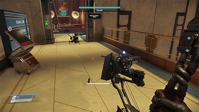 Die Gegner dürfen wir nicht unterschätzen. Vor der völlig fremden Alien-Rasse mit ihren ebenso befremdlichen Eigenschaften, Aussehen und Verhaltensmustern haben wir automatisch Respekt. Eine Kategorie, die Mimics, passen sich an ihre Umgebung an und tarnen sich äußerlich als gewöhnliches Rauminventar wie ein Telefon, einen Stuhl oder eine Kaffeetasse, nur um den Spieler dann aus dem Hinterhalt zu erschrecken. Andere Aliens gehen wesentlich aggressiver vor und besitzen Teleportations- und Fernkampffähigkeiten. Ein gesundes Maß an Paranoia ist die Grundlage, um den Alptraum zu überleben. Besonders da Prey auch auf normalem Schwierigkeitsgrad recht knackig ist und langsames sowie bewusstes Vorgehen empfiehlt. Ebenso vielfältig wie unsere Gegner müssen unserer Taktiken ausfallen, um gegen diese zu bestehen. Unser Waffenarsenal besteht aus einer Handvoll Feuerwaffen, Granaten und natürlich der guten alten Rohrzange. Richtig spaßig ist die Gloo-Kanone, die Gegner mit einer schnell trocknenden Pampe beschießt und in ihren Bewegungen einfriert, sodass wir anschließen alle Zeit der Welt haben, mit ihnen fertig zu werden. Ab einem gewissen Punkt im Spiel haben wir sogar die Möglichkeit, selbst Alien-Fertigkeiten zu erlernen, was die Abwechslung und Möglichkeiten des Kampfsystems erweitert. Aber Vorsicht: Je mehr wir uns den Aliens anpassen, desto höher ist die Chance, dass uns Abwehrsystem der Station als Feinde identifiziert.
