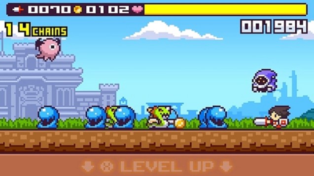 Eine Hintergrundgeschichte gibt es in Drancia Saga nicht. Das liegt daran, dass sich das Spiel eigentlich weniger als ein Action-Rollenspiel, sondern mehr wie ein Arcade-Titel aus Spielhalle anfühlt. Wir schlüpfen in die Rolle eines Helden, den wir aus einer Riege unterschiedlicher Charaktere auswählen und müssen uns anschließend durch mehrere Stages kämpfen. Die Stages, die wir aus der zweidimensionalen Seitenansicht erleben, sind jedoch nur so groß wie der Bildschirm des 3DS, weshalb es dann und wann sehr voll und gelegentlich auch unübersichtlich auf dem Screen werden kann. Aus dem Boden, von den Seiten und aus der Luft greifen immer mehr Gegner an, die wir besiegen müssen. Da unser Charakter von alleine losläuft und wir jeweils nur die Richtung und den Moment des Angriffs bestimmen dürfen, bleibt in Drancia Saga auch keine ruhige Sekunde. Ständig müssen wir den ganzen Bildschirm im Auge behalten, um keinen Gegner zu übersehen. Das ist deshalb wichtig zu erwähnen, da wir mit jedem besiegten Feind Goldmünzen einsammeln und unseren Punktestand in die Höhe treiben. Goldmünzen dienen allerdings unüblich nicht als Zahlungsmittel, sondern sowohl als Heilmittel für unsere Wunden, als auch als Erfahrungspunkte, mit denen wir unsere Attribute verbessern können. Durch den Tod der Spielfigur verlieren wir nach einem Continue übrigens nichts, sodass das Erhöhen der Attribute auf ihre Maximalwerte kaum bis gar nicht motiviert.