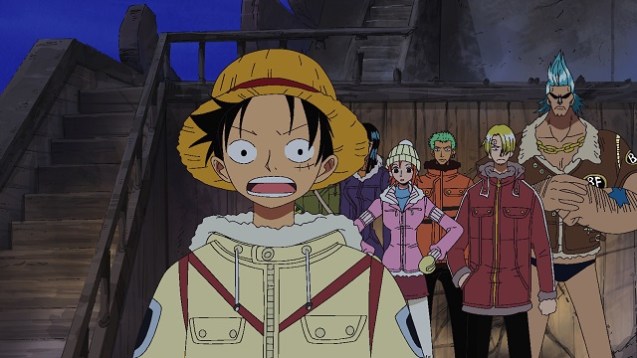 Über kurz oder lang landen die Strohhüte in den Fängen der Acchiinos, einer liebevollen Familie von Kopfgeldjägern. Diese agieren von ihrem geheimen Stützpunkt aus, der passenderweise als Lovely Land bezeichnet wird und sich auf der Eis-Straße befindet. Bei diesem Seeweg handelt es sich um eine Strecke, die zwischen Eisbergen hindurchführt. Angeblich gibt es kein Entkommen aus der Eis-Straße, doch wie One-Piece-Fans unlängst wissen, gibt es für die Strohhüte kein Unterfangen, das ihnen nicht gelingen würde. Blöderweise werden sie ein weiteres Mal voneinander getrennt und dann wird auch noch ihr Jolly Roger von den Kopfgeldjägern gestohlen. Diese Einladung, Don Acchiino die Leviten zu lesen, nehmen Ruffy, Zorro, Sanji und Co selbstverständlich an. Dies ist jedoch nicht das einzige Abenteuer, das die Piraten in den vorliegenden Episoden erleben. Ihre Reise in die Neue Welt führt sie auch durchs mysteriöse Dreieck, einem nicht gerade heimeligen Ort. Inmitten eines nahezu undurchdringbaren Nebels treffen sie auf ein Geisterschiff, auf dem Musiker Brook ganz alleine lebt. Während Ruffy das singende Skelett klasse findet und ihn sofort als neues Crew-Mitglied in die Strohhut-Band aufnehmen möchte, haben die anderen dabei so ihre Bedenken. Da dem Untoten aber der Schatten „abgeschnitten“ wurde, stellt sich das Unterfangen als schwierig heraus.
