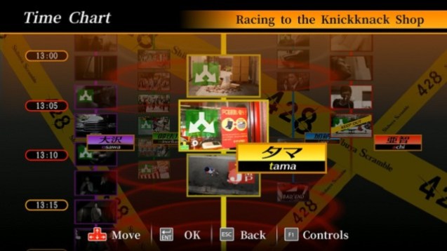 Gelingt das nicht oder erreichen wir das Ende eines Kapitels, gibt es jedoch Tipps, die uns auf eine richtige Fährte locken, um mit allen fünf Figuren die Story parallel fortzuspinnen. Minoru erreicht zum Beispiel in einer kritischen Situation seinen Zielort nicht rechtzeitig, da sein Taxi vom jungen Detektiv Shinya aufgehalten wird. Springen wir jedoch in die Ansicht von Shinya und treffen eine Entscheidung, die ihn dazu bringt, das Taxi nicht aufzuhalten, kommt Minoru in der Story voran. So sind die Schicksale aller Figuren auf kreative Art und Weise miteinander verbunden und ihre einzelnen Handlungsstränge werden immer weiter miteinander verwickelt. Stadtteil Shibuya als Standort, in dem sich alle Figuren bewegen, bietet eine Menge Abwechslung und Platz für Geschichten über Kidnapping, mysteriöse Fitness-Drinks sowie gefährliche Killer-Viren. Der Spieler darf sich auf eine Menge gefasst machen! Dabei ist es nicht immer leicht, den Überblick zu behalten. Es gibt zwar eine Übersicht über die Zeitverläufe der einzelnen Ereignisse, aber nachdem auf mehreren Ebenen gleichzeitig auf Veränderungen geachtet werden muss und der Spieler die freie Wahl hat, zu welchem Ereignis er springen will, könnte zeitweilig Verwirrung auftreten. Dazu kommt es vor, dass gewisse Abschnitte ein zweites Mal gespielt werden müssen, um eine andere Entscheidung zu fällen. Eine rasche Vorspulfunktion fehlt hier leider. Dennoch sorgt dieses System, das circa alle zehn Minuten eine Interaktion vom Spieler fordert, für ein angenehmes Pacing.