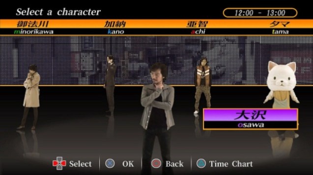 Es sollte allerdings knapp zehn Jahre dauern, bis Spieler außerhalb Japans diesen Titel in die Finger bekommen. Genretypisch wird bei Visual Novels in der Regel auf gezeichnete, dreidimensional modellierte oder stark verfremdete Hintergründe und Charakterdesigns zurückgegriffen, in Shibuya Scramble sind jedoch Hintergründe Fotografien von realen Schauplätzen und Figuren tatsächliche Schauspieler. Obgleich der „Echtheit“ der Figuren sind die fünf Charaktere von Shibuya Scramble teils auch für das bunte und vielseitige Genre selbst einzigartig. Sie sind allesamt sympathisch und machen es leicht, sich in sie hineinzuversetzen – trotz der Überdrehtheit von Shibuya Scramble. Sei es der aufgedrehte Journalist Minoru oder das Maskottchen Tama, das in einem Katzenanzug gefangen ist. Anfänglich folgt jede Figur ihrem eigenen Plot, im Laufe der Handlung laufen diese Erzählstränge aber zu einigen Hauptthemen zusammen. Auch wenn es sich um eine Visual Novel handelt, bietet Shibuya Scramble dennoch einige Gameplay-Aspekte. Zum einen gibt es Momente mit mehreren Antwortmöglichkeiten, zum anderen muss der Spieler beim Lesen auf bestimmte Schlüsselwörter achtgeben. Diese Hinweise sind farblich markiert und deuten auf Verbindungen zwischen den Storylines hin. Ab und an kommt es vor, dass die Story erst fortgesetzt werden kann, wenn wir diese Überschneidungen aufdecken.