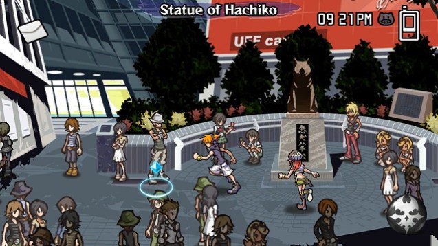 Abhilfe gegen eventuelle Steuerungsprobleme schafft die richtige Auswahl an Pins, also Attacken, von denen es in der Spielwelt ein Füllhorn zu finden gibt – und damit sehr viele unterschiedliche aggressive wie passive Strategien gegen die Gegner. Diese praktischen Anstecknadeln gibt es entweder nach erfolgreichen Kämpfen oder in einem der unzähligen Geschäfte zu ersteigern. Dort gibt es auch fürs Rollenspielgenre typische Ausrüstungsgegenstände zu erwerben, die nicht nur die Statuswerte beeinflussen, sondern auch das modische Auftreten. Im Spiel tief verankert ist ein starkes Modebewusstsein, das sich in Verbesserungen und Verschlechterungen der Statuswerte äußert, wenn wir im falschen Stadtviertel die falschen Marken tragen. Ein cooles Konzept, das sehr gut mit der aufgebauten Welt harmoniert. Angesagte Themen für Jugendliche wie Kleider, Handys und die neusten Trends sind ein wiederkehrendes Element in The World ends with you. Das äußert sich auch an der technischen Identität, vom poppigen Soundtrack, der sich mit allen Wassern gewaschen hat und mit eindringlichen Rhythmen und Gesangseinlagen stark im Vordergrund steht, bis zum grafischen Stil, den The World ends with you bis heute unverwechselbar macht und dem Spiel eine besondere Identität verleiht. Dank dieser Eigenschaften werden manche Spiele auch etwaige Schwierigkeiten bei der Steuerung in Kauf nehmen können.