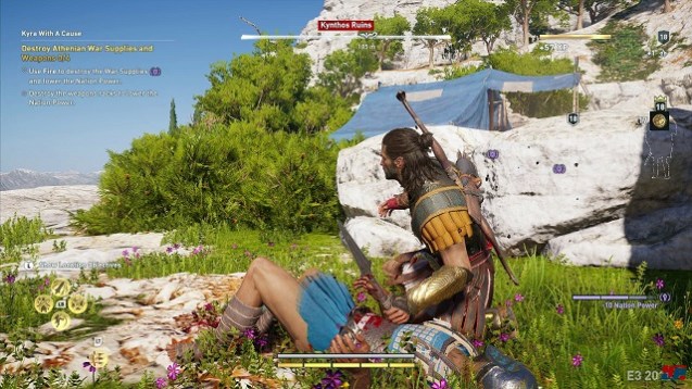 Sobald die Handlung richtig in Fahrt kommt, wird auch das Missionsdesign wieder vertrauter. Im Laufe des Abenteuers rücken immer mächtigere Zielpersonen in den Mittelpunkt, dessen Ableben die Story voranbringt. In Falle von Odyssey sind es zum Beispiel wichtige Generäle des peloponnesischen Krieges. Den historischen Konflikt zwischen Sparta und Athen kann der Spieler geschickt nutzen, um Aufträge beider Seiten anzunehmen und damit den doppelten Reibach zu machen. Die Meuchelmordtaktik ist dabei nur noch ein Weg, sich seit Origins den Feinden zu entledigen. Das neue Kampfsystem, das nun mit leichten und schweren Angriffen, Ausweichmanövern und Kontern ein weiterer Verweise auf das Genre des Action-Rollenspiels ist, wurde für Odyssey noch einmal erweitert. Zwar gibt es keine Schilde mehr, das belohnt allerdings die aggressiveren Spieler und macht die Kämpfe spannender. Das Kampfsystem spiegelt die Charakterentwicklung des Spielers schön wieder: Pro Level-Aufstieg wird ein Fähigkeitspunkt in neue Talente investiert, hinter denen sich zum größten Teil sehr unterschiedliche und tatsächlich neue Angriffe verbergen – und nicht nur kleine Verbesserungen der Spielfigur. Grundlegend lassen sich die Fertigkeiten in Kampf-, Bogen- und Schleichfähigkeiten einteilen, das Herumexperimentieren mit den besten Angriffskombinationen macht dabei eine Menge Spaß.