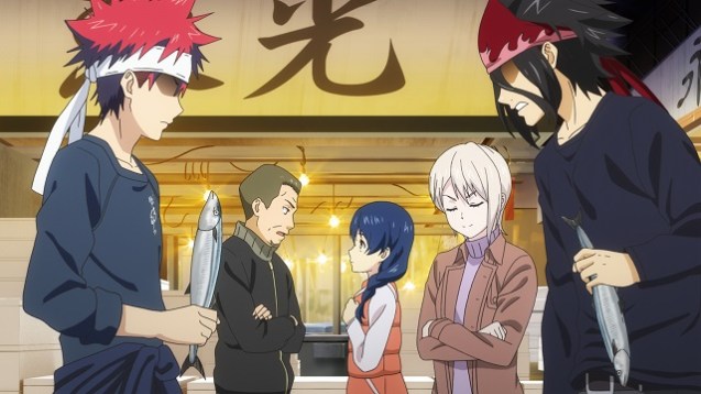 Food Wars: The Second Plate erzählt also nach wie vor eine spannende Geschichte, in der es einige Wendungen und Überraschungen gibt, auf die sich die verschiedenen Charaktere allesamt einstellen müssen. Es ist immer wieder erheiternd, wenn die illustren Figuren sich gegenseitig am Herd übertrumpfen wollen und mit der Zubereitungsform prahlen. Das fördert nicht nur die Erzählweise, sondern auch den Unterhaltungswert, sodass die vorliegenden Episoden wieder mit ihrem Humor überzeugen können. Beim Duell zwischen Akira und Ryō spielen die beiden ihre Karten gegeneinander aus – und genau das wird so dargestellt wie in Anime-Serien wie Yū-Gi-Ō, die sich um Sammelkartenspiele drehen. Es ist unglaublich lustig, wenn die Schleckermäuler beim Probieren plötzlich und unerwartet eine neue Zutat herausschmecken und genau dann eine Karte sinnbildlich als Überraschungsangriff umgedreht wird. Dies ist aber nur eines von vielen Beispielen, wie die Qualität der verschiedenen Gerichte bildlich für den Zuschauer ausgedrückt wird. Die Fische werden im Finale unter anderem als Katana dargestellt, um so ihre Schärfe auszudrücken. Wer in den vorherigen Episoden zudem die erotischen Anspielungen fast völlig vermisst hat, bei dem junge Damen knapp bekleidet ihre Geschmacksexplosionen in ihren Mündern erleben, wird alleine in der siebten Folge dieser Staffel wohl mehr als zufriedengestellt.
