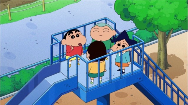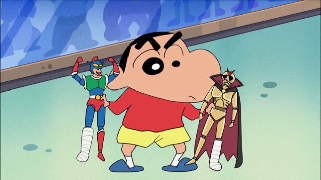 Anhand des Gipses ist auch zu erkennen, dass es in ganz seltenen Fällen auch im Original episodenübergreifende Handlungsstränge gibt. Nur einen Tag bevor Hiroshi seinen Gipsfuß abgenommen wird, leidet er plötzlich an einem Juckreiz – und im Fernsehen wird natürlich nur gezeigt, wie Leute sich kratzen. In der Nacht schnappt er sich dann auch noch Shinnosukes Action-Figur, demontiert die Arme, schraubt sie an einen Draht und versucht damit schließlich das Leiden am Fuß unterm Gips zu mildern. Dass die Arme der Figur im Gips stecken bleiben, ist selbstverständlich vorprogrammiert. An anderer Stelle machen sich Shinnosuke und seine Freunde für andere Menschen in ihrer Umwelt stark. Beispielsweise versuchen sie einen Dieb zu stellen oder zwei Brüder, die sich unabhängig voneinander verlaufen haben und auch noch Zwillinge sind, zur Polizeiwache in Kasukabe zu bringen. Hinzu kommt, dass es sich bei den beiden orientierungslosen Brüdern auch noch um ihre neuen Freunde im Kindergarten handelt. In anderen Folgen wird es noch kurioser: Shin-chans Freund Satō Masao verliert unterwegs eine 500-Yen-Münze, sodass sich die beiden keine Leckereien kaufen können. Mit Hilfe einer Drohne, die zur Überwachung von Shin-chan eingesetzt wird, kann das Geldstück lokalisiert werden. Wo die Münze genau landet und wie sie dahin gelangt ist, soll an dieser Stelle aber nicht verraten werden. Der typische Shin-chan-Humor lässt grüßen!