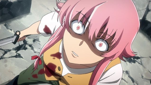 Auf der einen Seite ist das ein intelligenter Schachzug, denn so wird der Zuschauer weiterhin bei Laune gehalten – auf der anderen Seite kann eine solche Entscheidung jedoch gefährlich sein, da die Serie Gefahr läuft, mit einem unbefriedigenden Ende abgeschlossen zu werden. Bei Mirai Nikki ist das leider teilweise der Fall, denn die Geschichte wird zwar stringent bis zum Finale erzählt, lässt aber Fragen offen und verfängt sich in theoretischen Ansätzen. Da die meisten Charaktere in der Serie bereits das Zeitliche gesegnet haben, konzentriert sich die Erzählweise dabei vor allem auf Yuno und Yukiteru. Während Yukiteru mit dem von ihm verursachten Verlust seiner Freunde konfrontiert wird, ist Yuno vor allem damit beschäftigt, ihren Freund zu bezirzen. Diese zwischenmenschliche Beziehung ist allerdings äußerst problematisch, da Yukiteru Zweifel an ihrer Liebe hat. Außerdem wird er ein letztes Mal von Aru vor ihr gewarnt, sodass er ebenfalls befürchtet, dass Yuno ihn umbringen wird. Die Tage bis zum Weltuntergang verstreichen und trotz der Zweifel teilen die beiden ihre ersten intimen Momente miteinander. So entwickeln sich die Persönlichkeiten beider Figuren logisch weiter und bereiten sie sowohl zusammen als auch unabhängig auf das große Finale des Spiels auf Leben und Tod vor. Das Finale spielt regelrecht mit den hohen Erwartungen des Zuschauers, übertrifft diese jedoch einerseits und enttäuscht sie andererseits mit unbeantworteten Fragen.