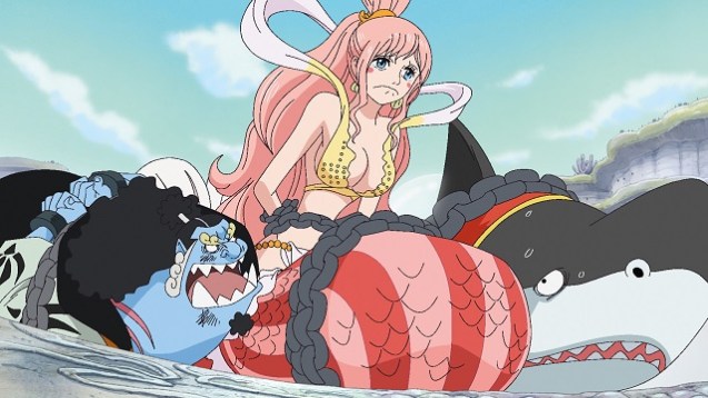 Monkey D. Ruffy und seine Freunde sind auf dem Weg in den zweiten Teil der Grandline, die allgemein auch als die Neue Welt bezeichnet wird. Die Route über die Redline konnten sie einerseits aus Kostengründen und andererseits wegen der anhaltenden Bedrohung durch die Marine nicht nehmen, sodass ihnen nichts weiter übrig blieb, als unter der Redline hindurchzusegeln. Dazu ging es zehntausend Meter tief hinunter zum Meeresboden, wo die Crew einen Zwischenstopp auf der Fischmenscheninsel einlegte. Wie das bei Ruffy, Lorenor Zorro, Nami, Lysop, Sanji, Chopper, Nico Robin, Frankie und Brook aber so der Fall ist, ziehen sie den Ärger meistens magisch an. Hinzu kommt, dass die Wahrsagerin Madame Shirley einen Blick in die Zukunft wirft und dort die von Ruffy ausgelöste Zerstörung der Fischmenscheninsel sieht. Schnell werden die Strohhüte für den ganzen Ärger, der peu á peu am Handlungsort lostritt, beschuldigt. Ein großes Problem dabei ist auch, dass es sich bei fast allen Strohhüten um Menschen handelt, die auf der Fischmenscheninsel respektive im Königreich Ryūgū keinen guten Ruf genießen. Um den Konflikt zu thematisieren und zu verdeutlichen, springt die Geschichte zehn Jahre in die Vergangenheit. Hier wird der Zuschauer Zeuge, wie Otohime, Meerjungfrau und Königin des Landes, vermeintlich von einem Menschen erschossen wird.