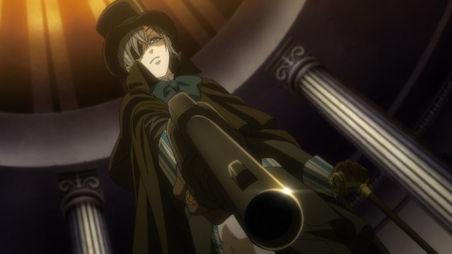 An dieser Stelle spaltet sich die Geschichte von Book of Circus hauptsächlich in zwei Handlungsbögen auf. Zum einen wird hier Ciels Besuch beim Baron geschildert und zum anderen rückt die Aufgabe der Zirkusangestellten, die Villa Phantomhive aufzusuchen, in den Mittelpunkt der Erzählung. Dies hat auch einen besonderen Grund: Baron Kelvin hat schon vor vielen Jahren einen Blick auf Ciel geworfen. Wann genau dies geschehen ist und welche Absichten Kelvin verfolgt, soll aus Spoiler-Gründen nicht verraten werden. Dennoch sei gesagt, dass mit der Einführung des neuen Charakters weitere Hintergründe über Ciels Vergangenheit aufgeworfen werden. Es ist abermals erstaunlich, wie gut sich dieser ausgeklügelte Erzählstrang mit der Rahmenhandlung der Anime-Serie verbindet. Während Ciel und Sebastian notgedrungen Kelvins perfides Spielchen erleben müssen, stecken Dompteurin Beast, Messerwerfer Dagger und Co beim Angriff auf Ciels Zuhause einen blutigen Rückschlag nach dem anderen ein. Fans des Hauspersonals kommen hier voll auf ihre Kosten, denn während sie in der ersten Staffel im Haushalt noch kläglich versagten, fahren sie hier zu Höchstformen auf. Während in den ersten Folgen Konflikte noch recht human gelöst worden sind, spritzt die rote Suppe beim Finale der dritten Staffel aus allen Löchern. Diese Episoden sind nichts für schwache Mägen!