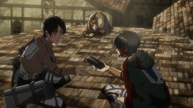 Attack on Titan knüpft nahtlos an den Cliffhanger der dritten Volume der dritten Staffel an. Mit Mühe und Not ist es dem Aufklärungstrupp gelungen, sowohl den sprechenden Tier-Titan als auch den gepanzerten und den kolossalen Titan zu besiegen. Dafür mussten jedoch so einige Soldaten der Truppe offenbar ihr Leben lassen. Genau dieser Umstand führt die Helden zu einem Konflikt, denn zwei wichtige Funktionäre sind stark verwundet und kämpfen noch um ihr Leben. Kommandant Erwin Smith leidet an inneren Blutungen, während Armin Arlert am ganzen Körper verbrannt ist und nur noch schwer atmen kann. Die Lösung liegt nahe: Mit einem Serum ist es möglich, einen Sterbenden in einen Titanen zu verwandeln, damit dieser einen der getöteten Titanen in Menschengestalt verspeisen kann. Bedauerlicherweise steht dem Trupp um Hauptgefreiten Levi Ackermann nur eine Spritze zur Verfügung, weshalb auf den Dächern des nach dem langen Kampf in der letzten Volume noch mehr in Mitleidenschaft gezogenen Distrikts Shiganshina ein Streit zwischen Eren Jäger, Mikasa Ackermann und Levi entbrennt. Für wen sich die Gruppe schlussendlich entscheidet, soll aus Spoiler-Gründen an dieser Stelle nicht verraten werden. Es sei nur gesagt, dass sich die dritte Staffel zum Ende hin ebenfalls darum bemüht, offene Fragen zu beantworten und neue Mysterien aufzuwerfen.
