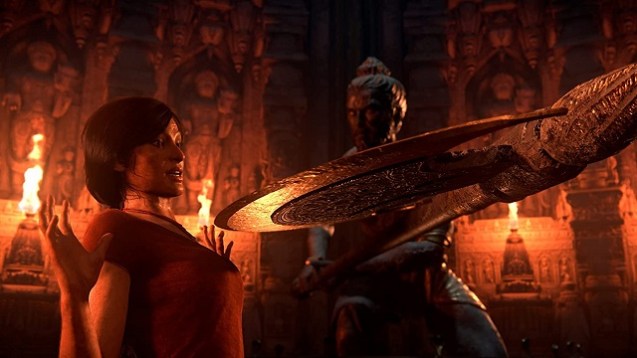 Beispielsweise erhalten wir neue Erkenntnisse über Nathans Familiennamen und erhaschen Einblicke in sein Eheleben mit Elena. In The Lost Legacy hat Nathan den Beruf an den Nagel gehängt, zumindest vorläufig. Stattdessen schlüpfen wir in der Erweiterung in die Rolle von Chloe Frazer, die Fans der Reihe schon aus dem zweiten und dritten Serienteil kennen. Mit Nadine im Schlepptau sucht sie in Westindien beziehungsweise den Westghats nach dem Stoßzahn von Ganeśa. Wie das bei einer Suche nach einem mythischen Artefakt so ist, muss es auch wieder einen Rivalen geben, der die beiden Helden daran hindern will. Arman Khurana, genannt Asav, versucht mit allen Mitteln, den Stoßzahn in seine Gewalt zu kriegen. Welchen Anreiz er dabei hat, wird erst im Finale der Handlung deutlich. Aus Spoiler-Gründen gehen wir an dieser Stelle nicht weiter darauf ein. Es sei jedoch gesagt, dass der Bösewicht recht blass bleibt und eher mit Worten denn mit Taten bedrohlich erscheint. Glaubhaft dargestellt werden hingegen die Hauptcharaktere Chloe und Nadine, die beide ihre eigenen und nachvollziehbaren Hintergründe spendiert bekamen. Trotzdem kann Nadine mit ihrem Verhalten und ihren Kommentaren gerne mal an unseren Nerven zerren. Wie gut, dass im letzten Spieldrittel ein weiterer Seriencharakter hinzu kommt und die Situation auflockert.