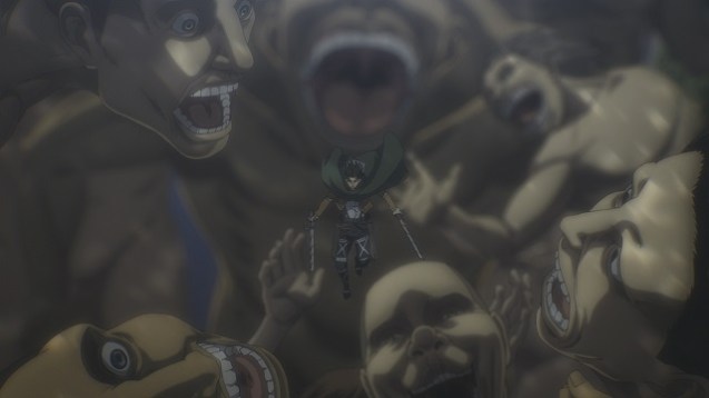 Durch diese Rückblicke erhält der Zuschauer einen Einblick darauf, wie es zu den heftigen Ereignissen in der ersten Staffel überhaupt kommen konnte. Marley-Soldaten und selbst in der Armee eingesetzte Eldia werden von den beiden hochrangigen Kommandanten Hanji Zoe und Levi Ackermann in Gewahrsam genommen. Es werden Bündnisse gesponnen, die verheerende Auswirkungen haben werden, über die an dieser Stelle jedoch nichts verraten werden sollen. Storytechnisch wird die Anime-Serie in dieser Volume äußerst politisch. Das ist auch am Schmieden von weiteren Bündnissen mit der Außenwelt zu erkennen. Dies ist durch Intervention des Staates Marley aber kaum möglich. Nur das östliche und an Japan angelehnte Land Hiizuru ist gewillt, sich mit der Insel Paradies zu verbünden. Wirtschaftliche Interessen überwiegen aber auch hier das Interesse, sodass die Diplomatie zwischen den beiden Ländern von Anfang an unter einem schlechten Stern steht. Da hilft es auch nicht viel, dass Erens Freundin Mikasa Ackermann offenbar eine besondere Beziehung zu einer wichtigen Familie des Staates Hiizuru hat. Schlussendlich sind aber sämtliche politischen Ansichten der Akteure von Attack on Titan derart verschieden, sodass es für den Zuschauer schwierig ist, ein klares Bild zu erhaschen. Das kann die Serie bekannterweise sehr gut.