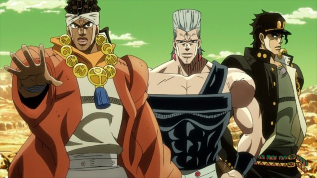 Beim ersten Kampf in der dritten Volume von JoJo’s Bizarre Adventure: Stardust Crusaders müssen sich Jōtarō, sein Großvater Joseph, Jōtarōs Mitschüler Kakyōin Noriaki und sogar der „von den Toten auferstandene“ Stand Master Avdol Mohammed mit einem gefährlichen Feind agieren, der jedwede Geräuschentwicklung auf dem Boden auch in kilometerweiter Entfernung wahrnehmen kann. Entsprechend müssen sie sich einen Plan überlegen, wie sie sich ohne Bodenberührung ihrem Feind nähern können. Durch verschiedene Umstände geht die Reise über Umwege weiter, da verletzte Mitstreiter schließlich verarztet werden müssen. Bei den so genannten Oingo-Brüdern handelt es sich um zwei weitere Stand Master. Der eine kann sein Aussehen verändern und versucht, Jōtarō zu kopieren, um Joseph und Co in die Irre zu führen. Der andere verfügt über ein magisches Comicbuch, das die Zukunft des Lesers abbildet. Dass die Todesumstände sich jedoch bei einer so bekloppten Truppe wie die von Jōtarō ändern können, müssen die Oingo-Brüder auch noch lernen. Andere Gegner magnetisieren die Helden oder lassen sie ähnlich wie Kudō Shin’ichi in der Anime-Serie Detektiv Conan schrumpfen. Da ihre Feinde mit deren Tod oder ihrer Verstümmelung nicht mehr in der Lage sind, Antworten zu geben, kommen sie Dio nur stückchenweise näher.