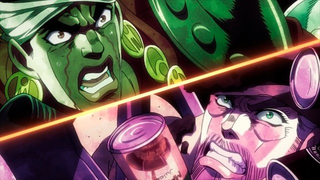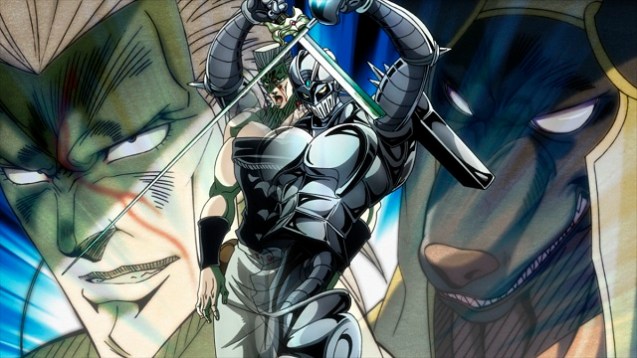 Trotz der blutigen Auseinandersetzungen bleibt in der Anime-Serie jede Menge Platz für Humor. Allem voran sei hier Neuzugang Iggy erwähnt, der ordentlich für Trubel sorgt. Der verfressene Boston Terrier hilft den Helden meistens unbewusst. Beispielsweise schnappt er sich in einem Restaurant das Essen von einem benachbarten Tisch, sodass Jōtarō und Co einem Giftanschlag entgehen. Später stolpert einer der Stand Master über den Hund, während dieser seinen Bumerang wirft, der daraufhin jedoch weiter als geplant fliegt. So bleibt es selbst in bedrohlichen Situationen immer witzig. Das liegt jedoch zum Teil auch an der deutschen Synchronisation, bei der hiesige Kinderquizsendungen wie „1, 2 oder 3“ und internationale Produktionen wie „Alfred J. Kwak“ zitiert werden. Nichtsdestotrotz kann die Serie selbstverständlich auch im japanischen Original punkten, da vor allem die abgedrehten Situationen davon profitieren. In technischer Hinsicht stehen die Episoden den vorherigen Folgen in Nichts nach. Alle Szenen erstrahlen im bildschirmfüllenden 16:9-Format in der Auflösung von 1080p. Akustisch hat sich am Format DTS-HD Master Audio 2.0 nichts verändert. In puncto Bonusmaterial gibt es digital ein paar Clean Openings und Endings. Physisch liegen der Veröffentlichung immerhin eine Art Card und ein Standee bei. Nett!