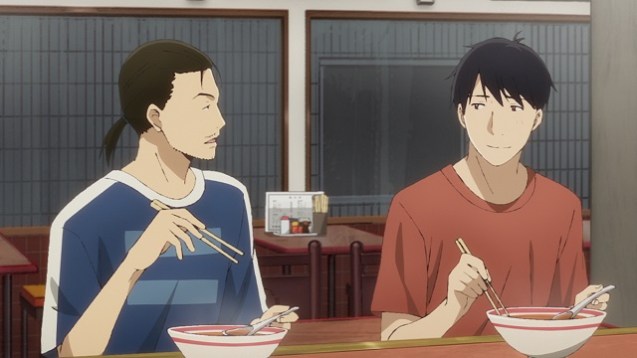 An der technischen Prämisse hat sich seit den ersten Episoden von Sing “Yesterday” for me nicht viel geändert. Die Hintergründe wirken in der zweiten Serienhälfte immer noch so, als seien sie abfotografiert und anschließend überzeichnet worden. Das urbane Setting ist damit ebenso erwachsen und realitätsnah eingefangen wie die Handlung im Allgemeinen. Hinzu kommt, dass die meisten Szenen in der Dämmerung, am Abend oder in der Nacht spielen. Gibt es dann dennoch mal eine Sequenz, die tagsüber spielt, verdecken häufig Wolken den Himmel oder es regnet wie aus Kübeln. Kommt es selten mal zu Sonnenschein, werden die Schattierungen an den Figuren ungewöhnlich stark charakterisiert. Die Stimmung wird damit sehr melancholisch ausgeschmückt. Trotzdem gibt es immer wieder Lichtstellen, die die Dunkelheit verdrängen und dem Szenario einen hoffnungsvollen Anstrich verleihen. Im 16:9-Format und in der Auflösung von 1080p kommen aber nicht nur die Hintergründe zur Geltung. Auch die erwachsenen Charaktermodelle passen mit ihren Proportionen in das Gesamtbild. Die Animationen sind flüssig und die Bewegungen der Charaktere, die zumeist auf Mimik und Gestik zurückzuführen sind, unterstreichen ihre Handlungen parallel zu der erzählten Handlung von Sing “Yesterday” for me wunderbar und sind fast schon einzigartig.