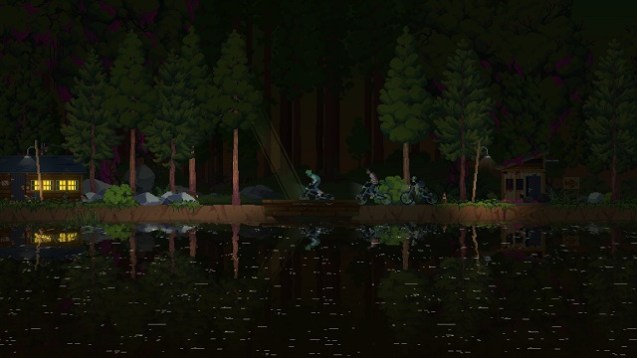 Handlungstechnisch findet Kingdom Eighties, wie könnte es auch anders sein, irgendwann in den 1980er-Jahren statt. Angekommen im Lager-Königreich müssen wir dieses fortan verteidigen. Zumindest lässt uns dies die Intro-Zeichentricksequenz vermuten. Wenig später erfahren wir, dass wir uns anscheinend schon etwas länger im Lager befinden und einen Weg zurück nach Hause finden wollen. Die Straßen sind dicht, über das Münztelefon erreichen wir daheim nur den Anrufbeantworter und zu allem Übel ist auch noch das Kanu gestohlen wurden! Das Boot ist offenbar unsere einzige Chance, überhaupt nach Hause zu kommen. Also krempeln wir die Arme hoch und machen uns an die Arbeit, von der es in Kingdom Eighties reichlich gibt. So sammeln wir zunächst ein paar Münzen ein und können damit das Lager aufschlagen beziehungsweise das Jugendzentrum im Mittelpunkt des Camps errichten. Gut, ein wenig unsinnig ist dies in Anbetracht der angedeuteten Geschichte zwar schon, doch nehmen wir diesen Umstand einfach mal so hin. Im Anschluss rekrutieren wir für ein paar Münzen Kinder, die unsere wichtigste Ressource sind. Sie stellen die Arbeitskraft dar, denn selbst arbeiten wir nicht. Wir delegieren indem wir uns auf unser Fahrrad schwingen und die zweidimensionale Welt von links nach rechts und umgekehrt abradeln und Befehle geben.