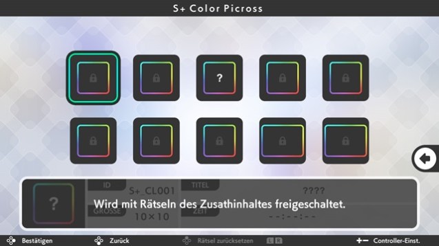Nach dem im April 2023 veröffentlichten Picross S9 schlägt Publisher und Entwicklerstudio Jupiter mit Picross S+ neue beziehungsweise alte Wege ein. Die Entwickler haben sämtliche Puzzles, die im Rahmen der Picross-e-Reihe auf dem 3DS veröffentlicht wurden, auf die Hybridkonsole gehievt. Vollständig ist das circa fünf Euro teure Spiel aber nicht, denn wenn ihr Picross S+ erwerbt, erhaltet ihr lediglich den Zugang zu den Nonogrammen genannten Gitternetzrätseln von Picross e aus dem Jahr 2012. Dieses enthält insgesamt 300 Puzzles, aufgeteilt auf 150 normale Picross-Rätsel und 150-Mega-Picross-Rätsel, doch dazu später mehr. Bei den anderen acht Serienteilen, die bis 2018 im eShop des 3DS erschienen sind, handelt es sich um kostenpflichtige Zusatzinhalte, die ihr einzeln für jeweils fünf Euro hinzukaufen müsst. Jeder dieser Download-Inhalte umfasst für diesen Preis mindestens 300 Puzzles in der bereits erwähnten Aufteilung und zumeist auch eine variierende Anzahl an Bonusrätseln für den Clip-Picross- und Color-Picross-Modus. Obwohl uns persönlich ein Komplettpaket deutlich lieber gewesen wäre, dürfte die Struktur aber wohl nur die wenigsten stören. Immerhin könnt ihr so gezielt die Rätselpakete erwerben, die ihr wirklich benötigt. Wer keinen japanischen 3DS sein Eigen nannte, wird in Picross S+ vermutlich – ähnlich wie wir –, ganz heiß auf Picross e9 sein.