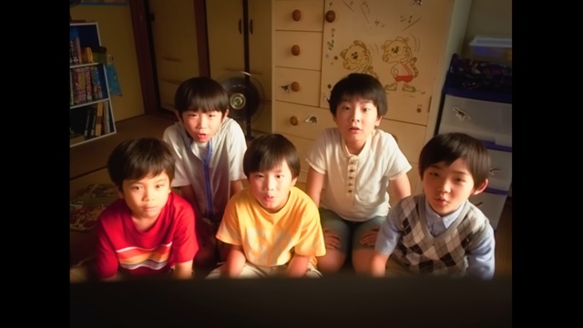 Mit einem gelben Oberteil leitet der Trailer den zweiten Akt ein. Inzwischen ist das Jahr 1993 angebrochen und Seiken Densetsu 2 ist in Japan bereits für das Super Nintendo beziehungsweise Super Famicom erschienen. Der Junge ist diesmal aber nicht alleine – er bringt gleich ein paar Freunde mit nach Hause zum Spielen. Fast schon achtlos oder vielmehr aufgeregt schlüpfen die Kinder im genkan, dem Eingangsbereich eines japanischen Hauses, aus ihren Schuhen. Damit es für die fünf Freunde losgehen kann, muss aber erst einmal die Konsole mit dem Röhrenfernseher stilecht per Composite-AV-Kabel verbunden werden. Inzwischen ist der Trailer in seiner Erzählstruktur an der Stelle angekommen, dass aus dem erwachsenen ein kindlicher Offsprecher geworden ist. Die Magie ist offenbar perfekt, fühlt sich der Zuschauer an dieser Stelle noch eher in seine Kindheit versetzt. „Ich hatte immer meine Freunde dabei auf allen Abenteuern“, heißt die nächste aufgestellte Behauptung. Belegt wird dies mit ein paar Fahrrädern, die im Gegensatz zu den Schuhen sorgsam vor dem Haus geparkt wurde. Ein Kescher zum Fangen von Insekten untermauert zusätzlich zur japanischen Architektur, dass es sich um japanische Kinder handelt, die seit Jahrzehnten Insekten fangen und sammeln – so wie es beispielsweise Pokémon-Erfinder Tajiri Satoshi ebenso in seiner Kindheit getan hat.