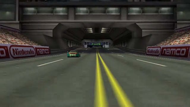 Schauen wir uns im Hauptmenü weiter um, fällt uns auf, dass zu Beginn nur wenige Inhalte freigeschaltet sind. Neben dem Quick Play stolpern wir zunächst über den Grand-Prix-Modus. Wider Erwarten absolvieren wir im Grand Prix allerdings nicht mehrere Strecken hintereinander. Auch werden hier keine Punkte gesammelt. Stattdessen ist es unsere Aufgabe, auf jeder einzelnen Piste den ersten Platz zu belegen. Anfangs sind jedoch nur wenige Strecken und Fahrzeuge auswählbar. Immer dann, wenn wir alle verfügbaren Kurse absolviert haben, schaltet das Spiel ein Bündel weiterer Strecken frei. Hier düsen wir dann durch die Stadt, die Wüste, eine Berglandschaft oder am Ozean vorbei. Die Rennboliden von Ridge Racer 64 sind ebenso fiktiv und lehnen sich vage an echten Fahrzeugen an, die sich vor allem in ihren Attributen wie Tempo oder Beschleunigung unterscheiden. Im gleichen Atemzug zu den neuen Rennstrecken werden auch weitere Rennwagen freigeschaltet, sofern wir einen gegnerischen Fahrer mit dem entsprechenden Fahrzeug im Car-Attack-Modus überlisten. Ansonsten gibt es noch den Time-Attack-Modus, bei dem es darum geht, ohne Kontrahenten auf der Strecke eine Bestzeit aufzustellen. Im Mehrspielermodus können wir hingegen bis zu drei Freunde lokal herausfordern. Nett, aber dennoch weit vom Spaßfaktor von Mario Kart 64 entfernt.