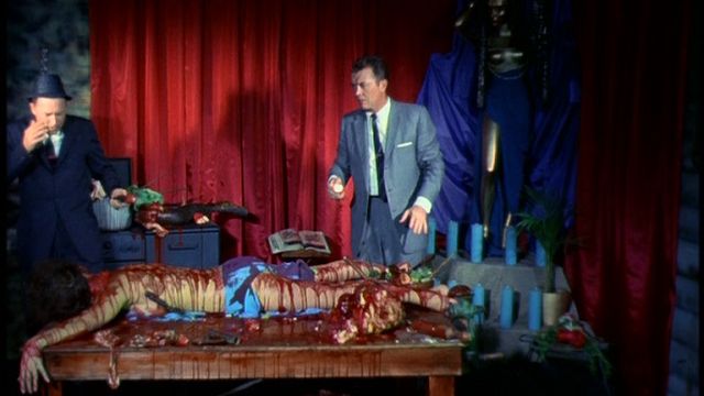 Castle verwischte beinahe einem Eugen Berthold Friedrich Brecht oder Antoine Marie Joseph Paul Artaud gemäß die Grenzen zwischen Bühne und Auditorium, ließ den filmischen Raum auf den der Betrachter übergreifen, überbrückte in Maßen den Aktiv-Passiv-Dualismus des Films und machte seine Beiwohner zu Beteiligten. Ein künstlerischer Anspruch steckte freilich nicht dahinter. In erster Linie ging es Castle darum, die Leute in seine Shows zu locken und um Ticketverkäufe – mit Erfolg. Herschell Gordon Lewis war Castle insofern nicht unähnlich, dass ihm ebenso wenig an künstlerisch wertvoller Arbeit denn effektvollem wie einträglichem Kintopp gelegen war. Sein 1963 erschienener, aber kostengünstig produzierter Blood Feast suhlte sich geradezu in Blut und den Gräueltaten, die sein von der Göttin Ištar besessener Killer vor allem jungen Frauen antut. Damit gilt er als erster waschechter Splatterfilm der Filmgeschichte; ein Subgenre, das die blutige Zerstückelung und regelrechte Vernichtung des Körpers in paradoxerweise gleichermaßen abstoßender wie anziehender Manier zelebriert. Die Bilanz gab Lewis recht und mit den ähnlich gelagerten und augenzwinkernden Produktionen Two Thousand Maniacs! von 1964 und The Wizard of Gore von 1970 errang er für sich das Epitheton ornans „Godfather of Gore“.